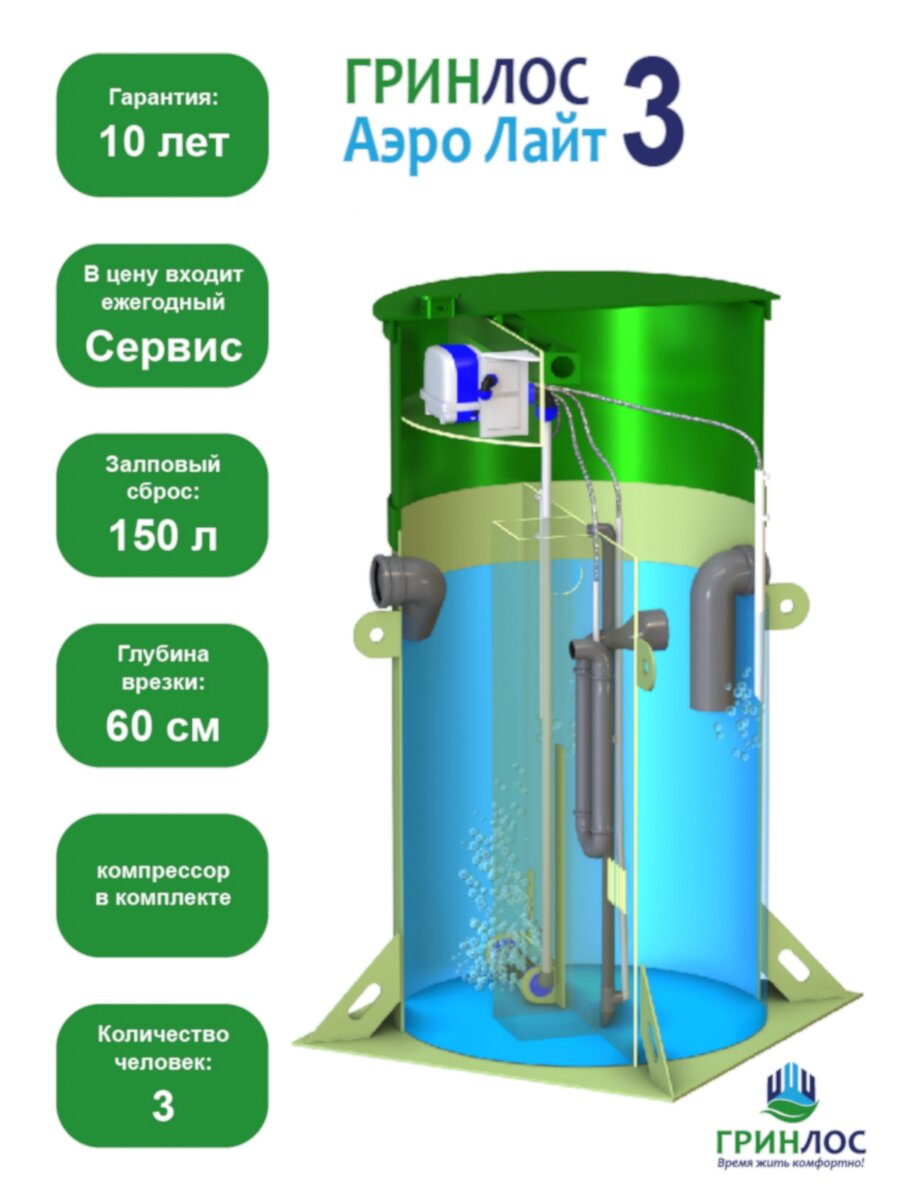 Станция глубокой очистки ГРИНЛОС Аэро Лайт 3, полипропиленовый корпус, аэробная очистка интересное: