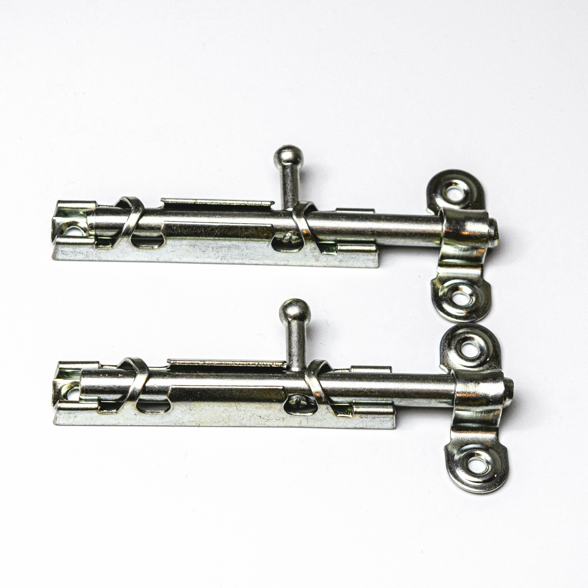 Задвижка накладная дверная 2 шт цинк, шпингалет длинный дверной, торцевой для ванной, туалета, окна, ЗТ-1 с цельным движком
