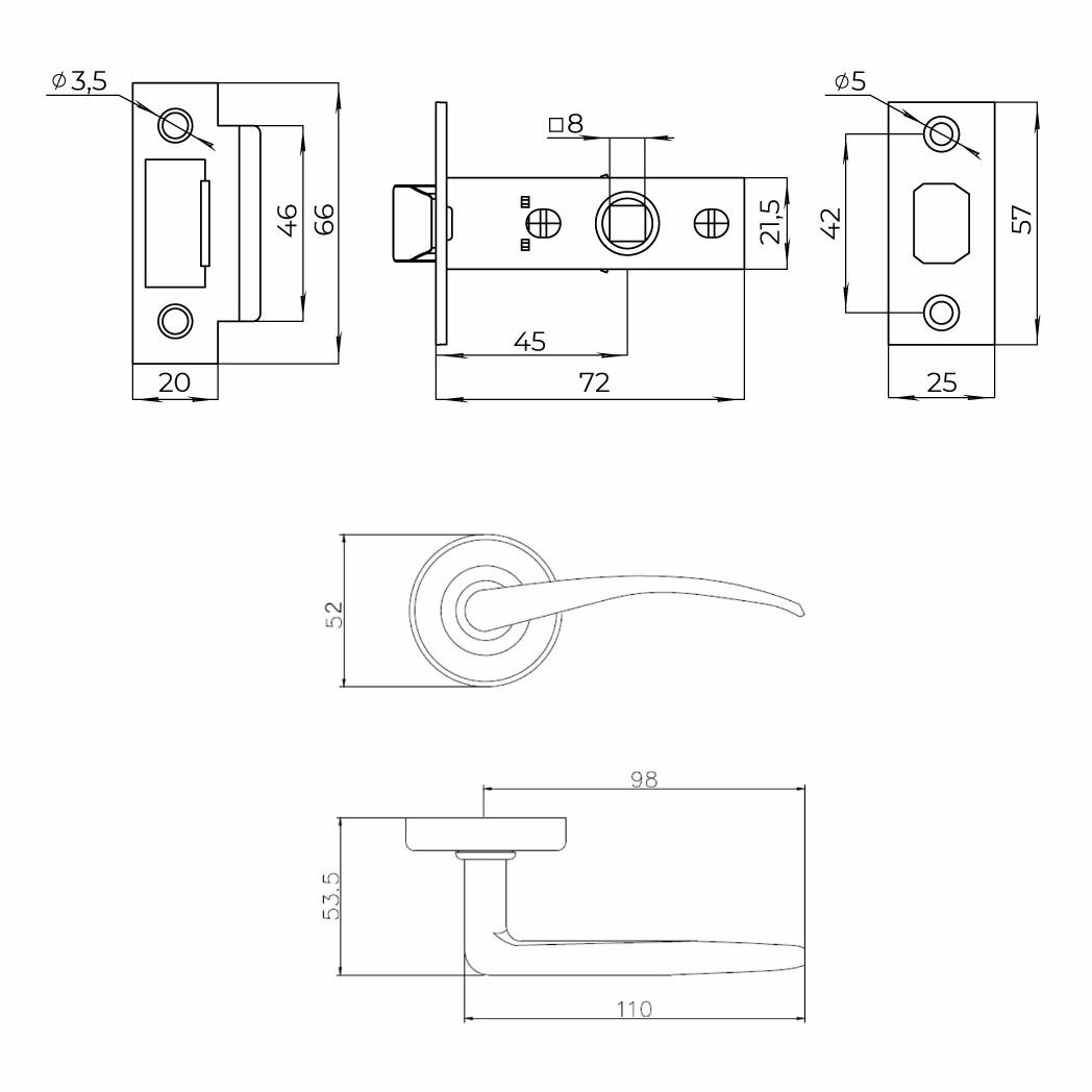 | Комплектация | защелка, ответная планка с декоративной заглушкой, дверные ручки, крепежная фурнитура, шаблон и инструкция по установке |
