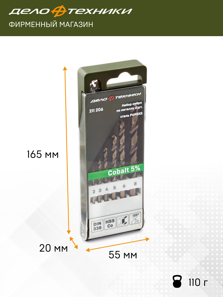 Набор свёрл Дело Техники по металлу Cobalt 5%, P6M5K5, 6 шт, 211206 интересное: