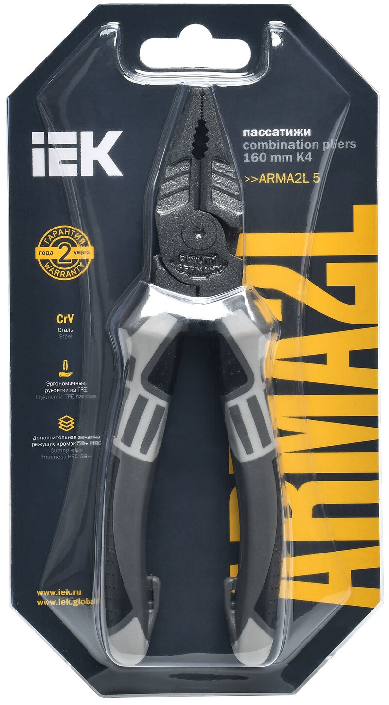 Пассатижи IEK K4 ARMA, с изоляцией, CR-V, 17 см, 235 г, чёрное покрытие интересное: