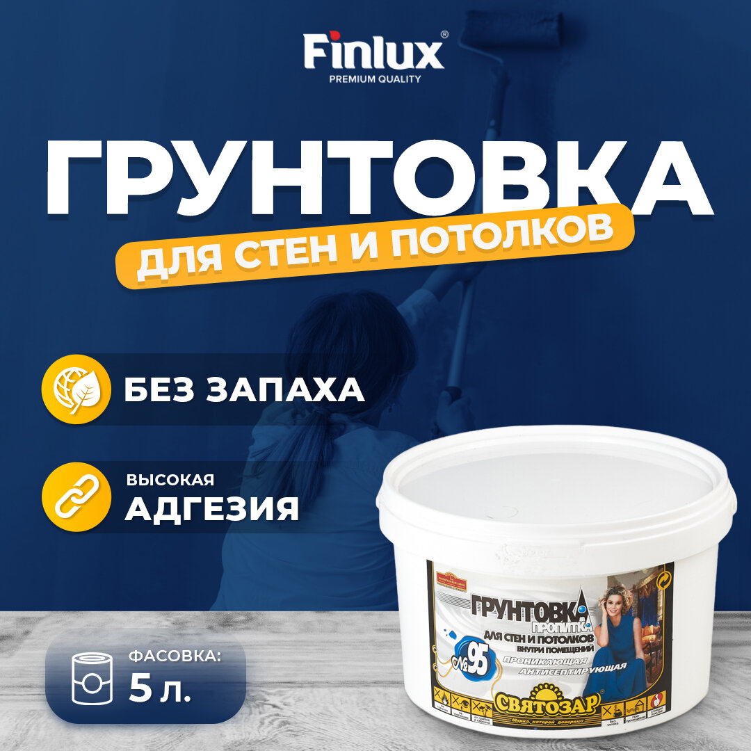 Купить Грунтовка глубокого проникновения для стен и потолков Finlux Святозар-95 антисептирующая, готовая к применению, укрепляющая, противоплесневая, 5 кг
