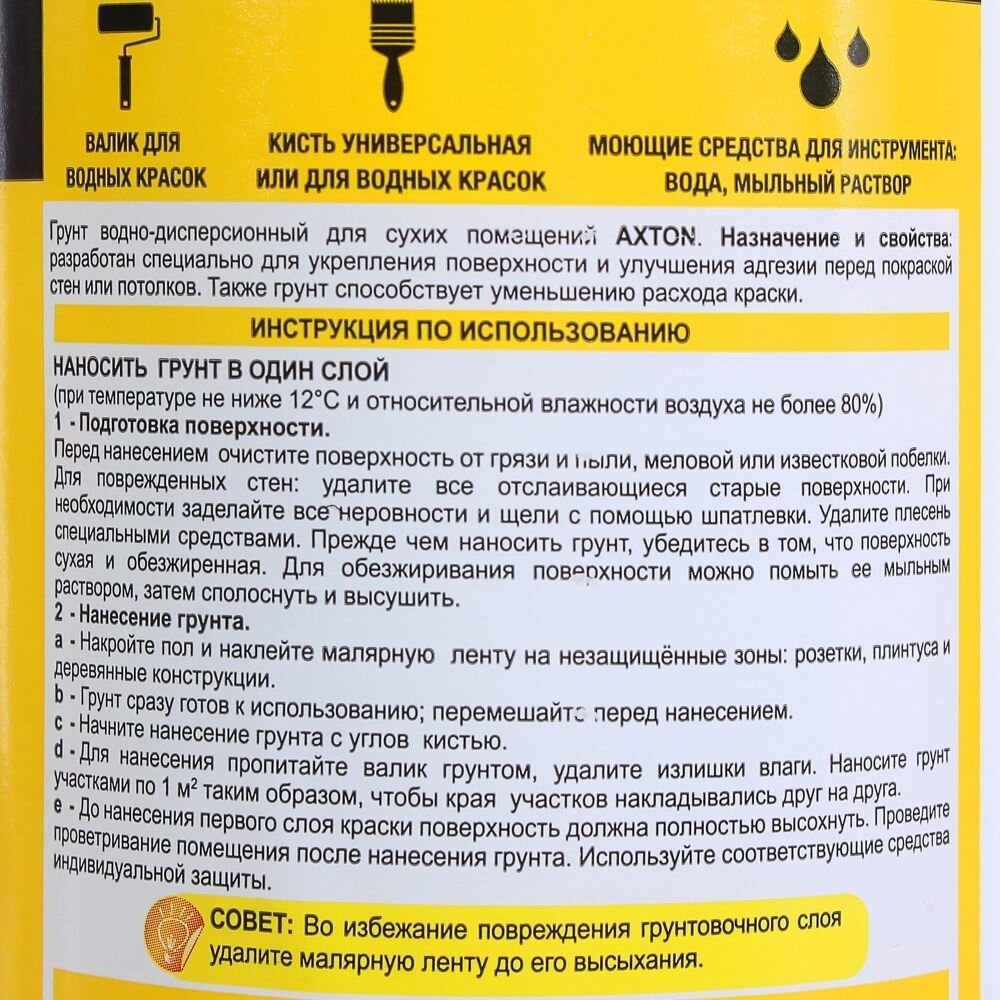 Купить Акстон грунтовка для внутренних работ бесцветная (1л) / AXTON грунт перед окрашиванием для сухих помещений бесцветный (1л)
