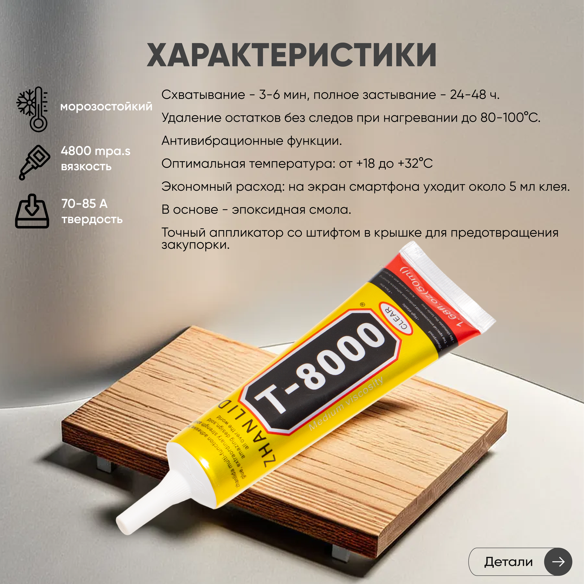 Клей герметик Т-8000 (50 мл), прозрачный, эластичный, многофункциональный, для проклейки/приклеивания/приклейки/тачскринов, дисплеев, t-8000 -50мл интересное: