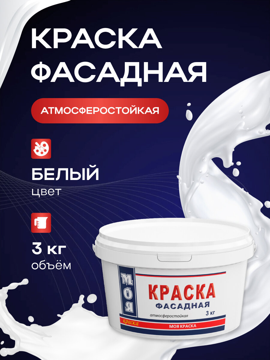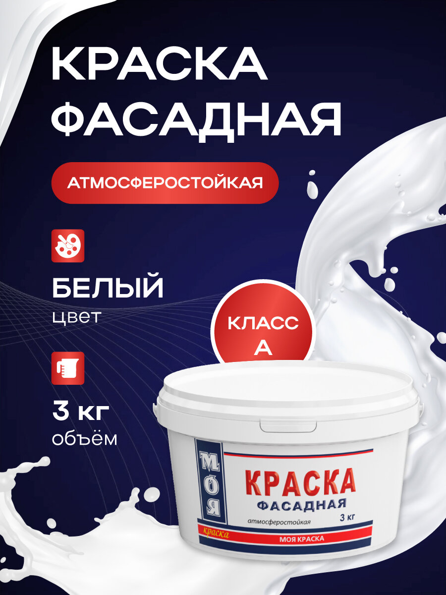 Купить Краска фасадная водно-дисперсионная, белая, для наружных и внутренних работ МОЯ КРАСКА , 3кг