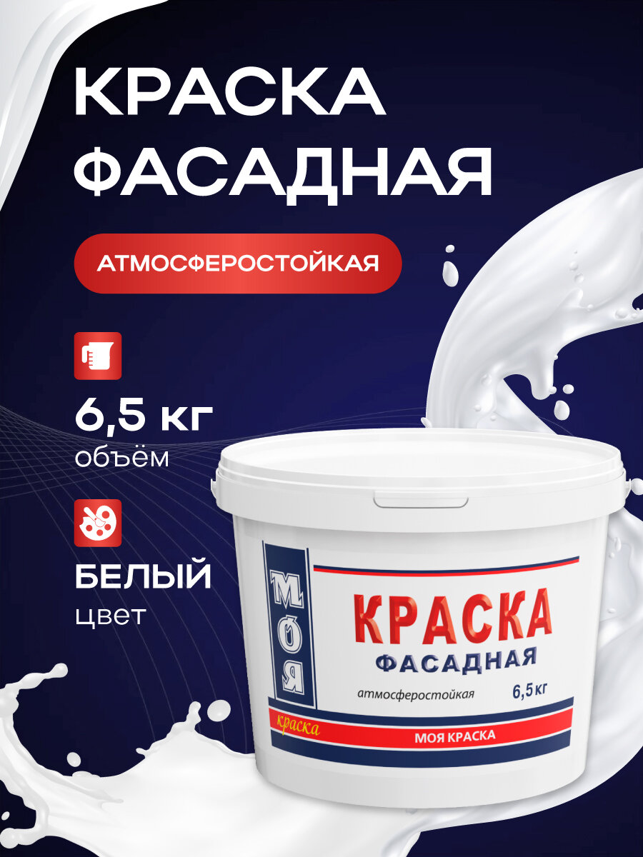 Краска фасадная для наружных работ, белая МОЯ краска 6,5 кг