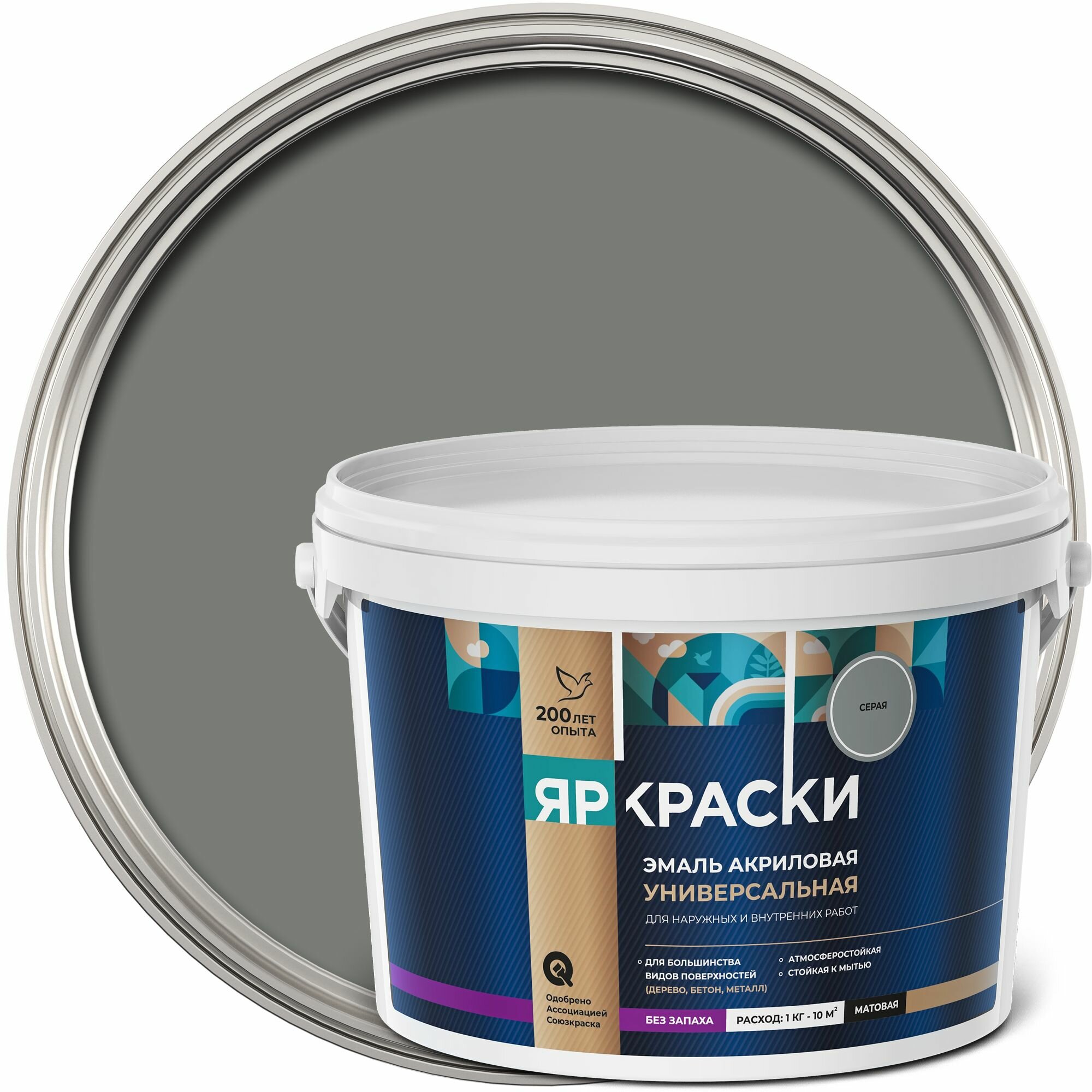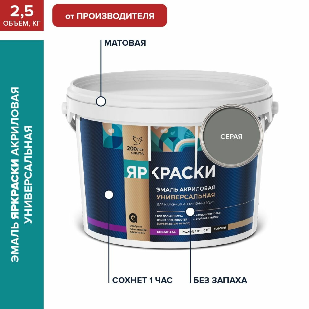 Купить Эмаль акриловая универсальная яркраски серая матовая без запаха, 2.5 кг