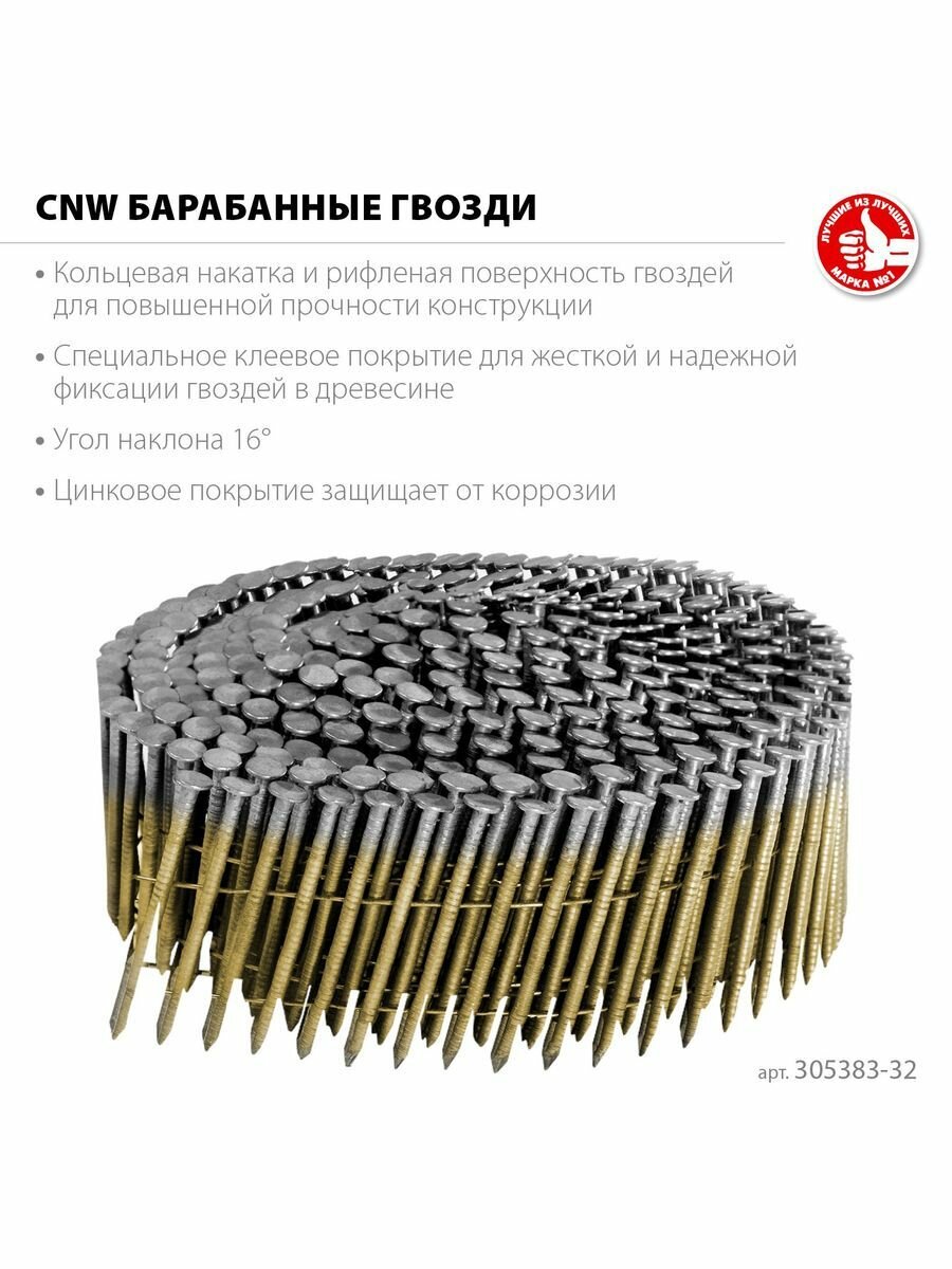 ЗУБР CNW 32 х 2.1 мм, барабанные гвозди рифленые оцинкованные, 14700 шт (305383-32) (305383-32)