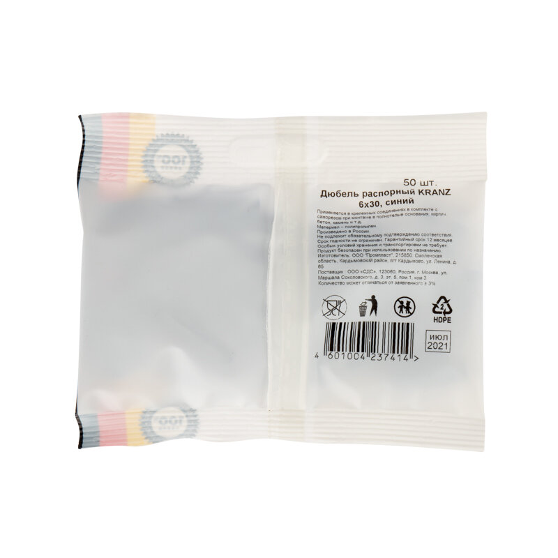 Дюбель распорный 6*30 синий пакет 50шт/уп. KRANZ интересное: