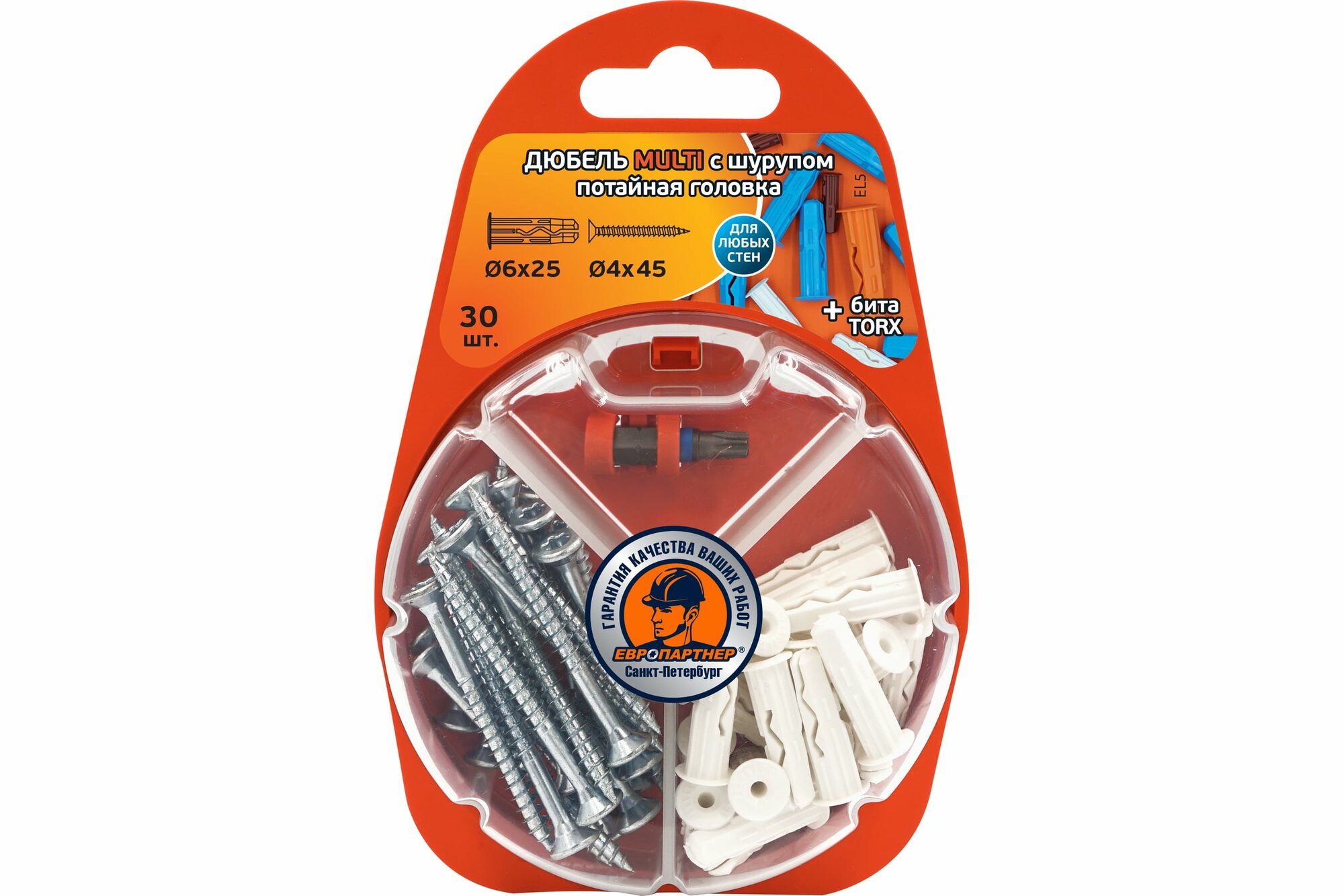 | Дополнительная информация | Дюбель универсальный распорный ЕВРОПАРТНЕР MULTI Plug 6x25 мм 30 шт |