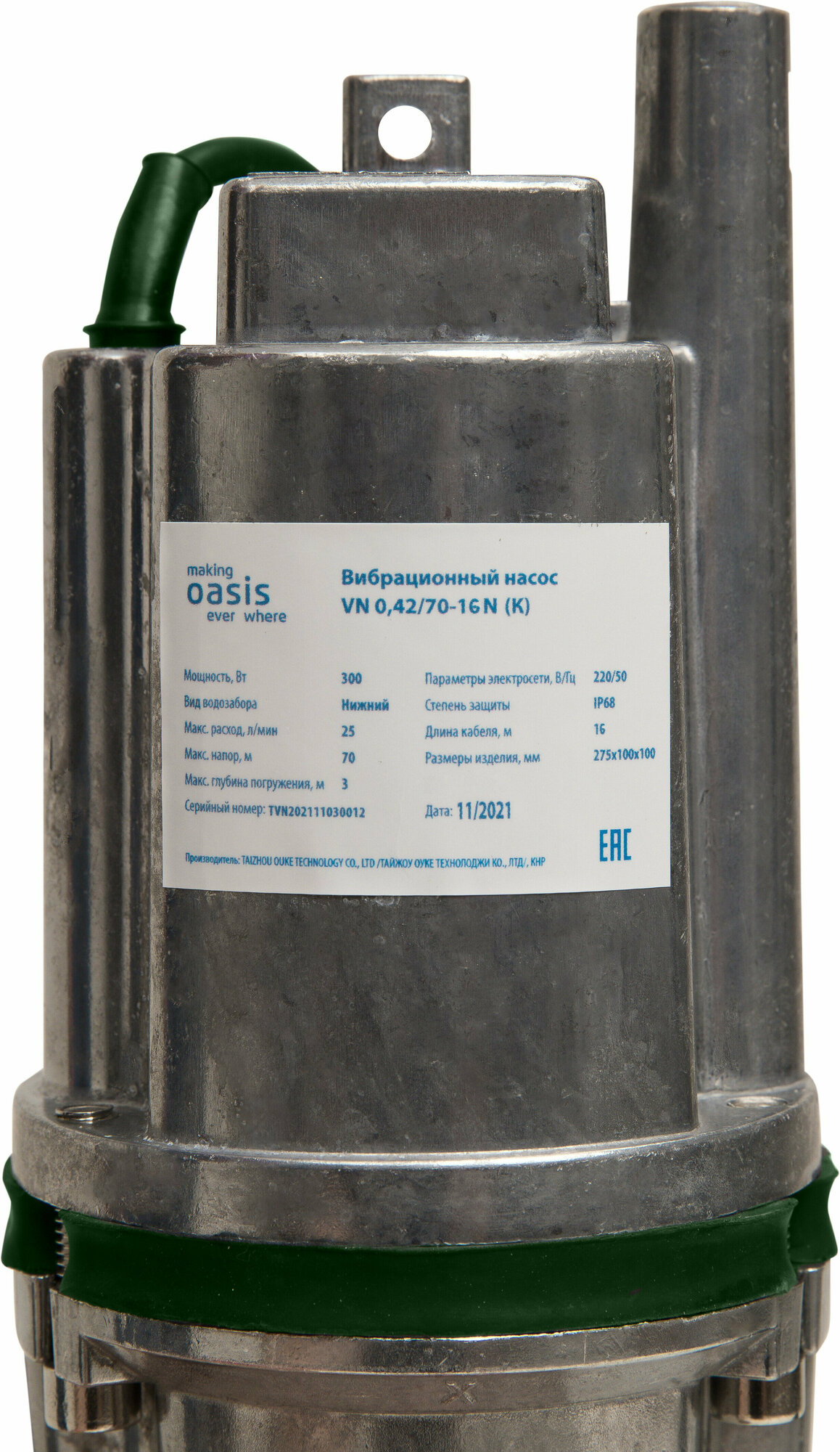 Насос погружной вибрационный making Oasis everywhere VN 0,42/70-16N, нижний забор, колодезный