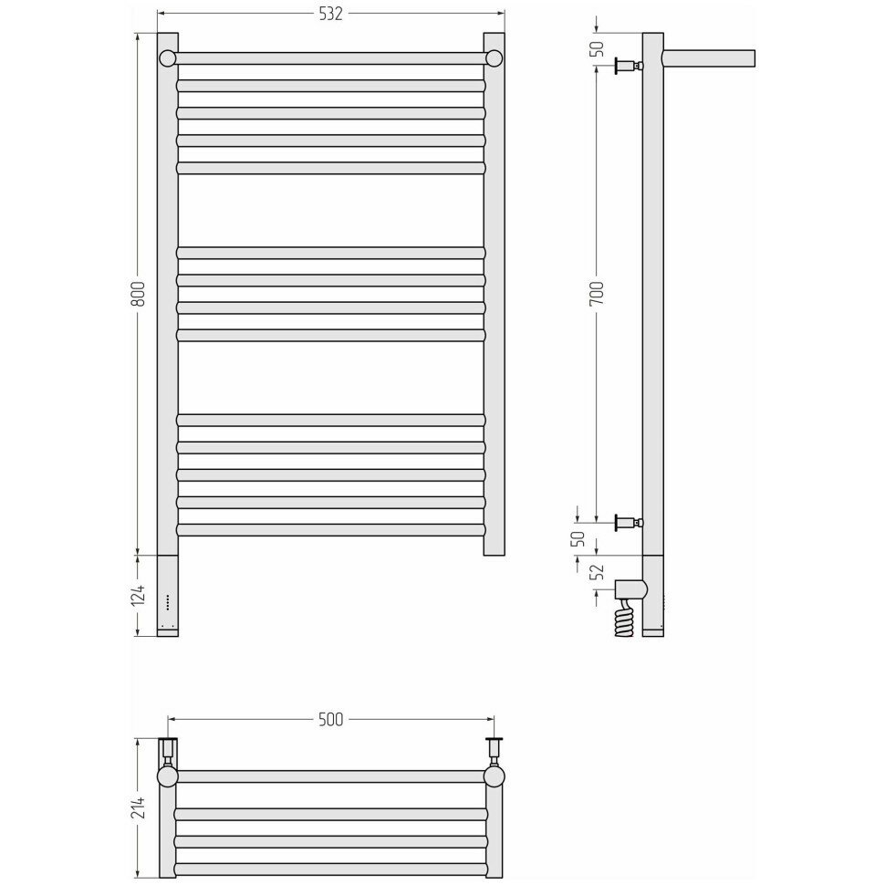 Полотенцесушитель Электрический Тругор Пэк сп 5 П 60х50 черный ВГП