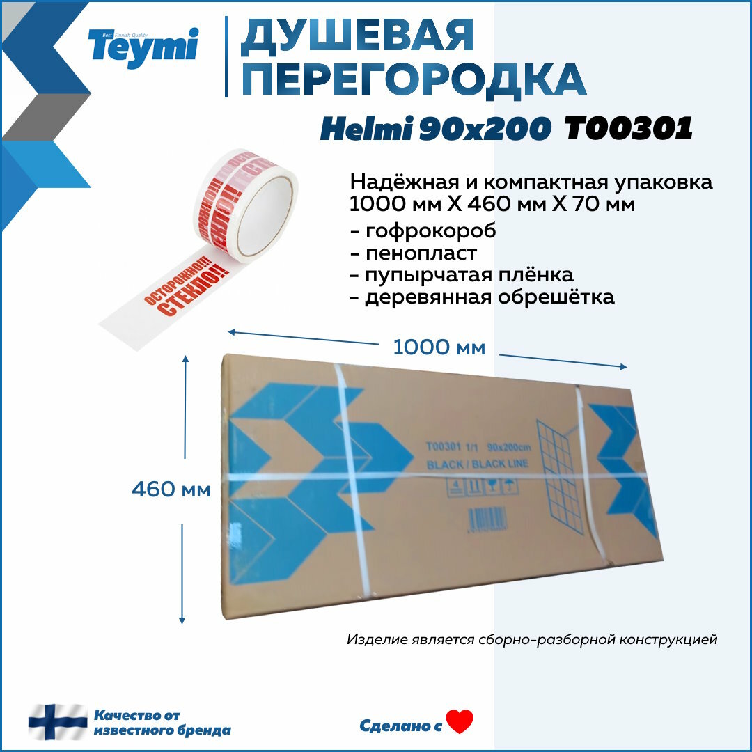 Купить Душевая перегородка 90x200 стекло прозрачное закаленное профиль черный матовый Teymi Helmi T00301
