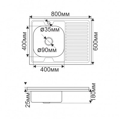 Мойка для кухни из нержавеющей стали накладная (80х60/0,8/18) левая прямоугольная с сифоном 3 1/2 MIXLINE интересное:
