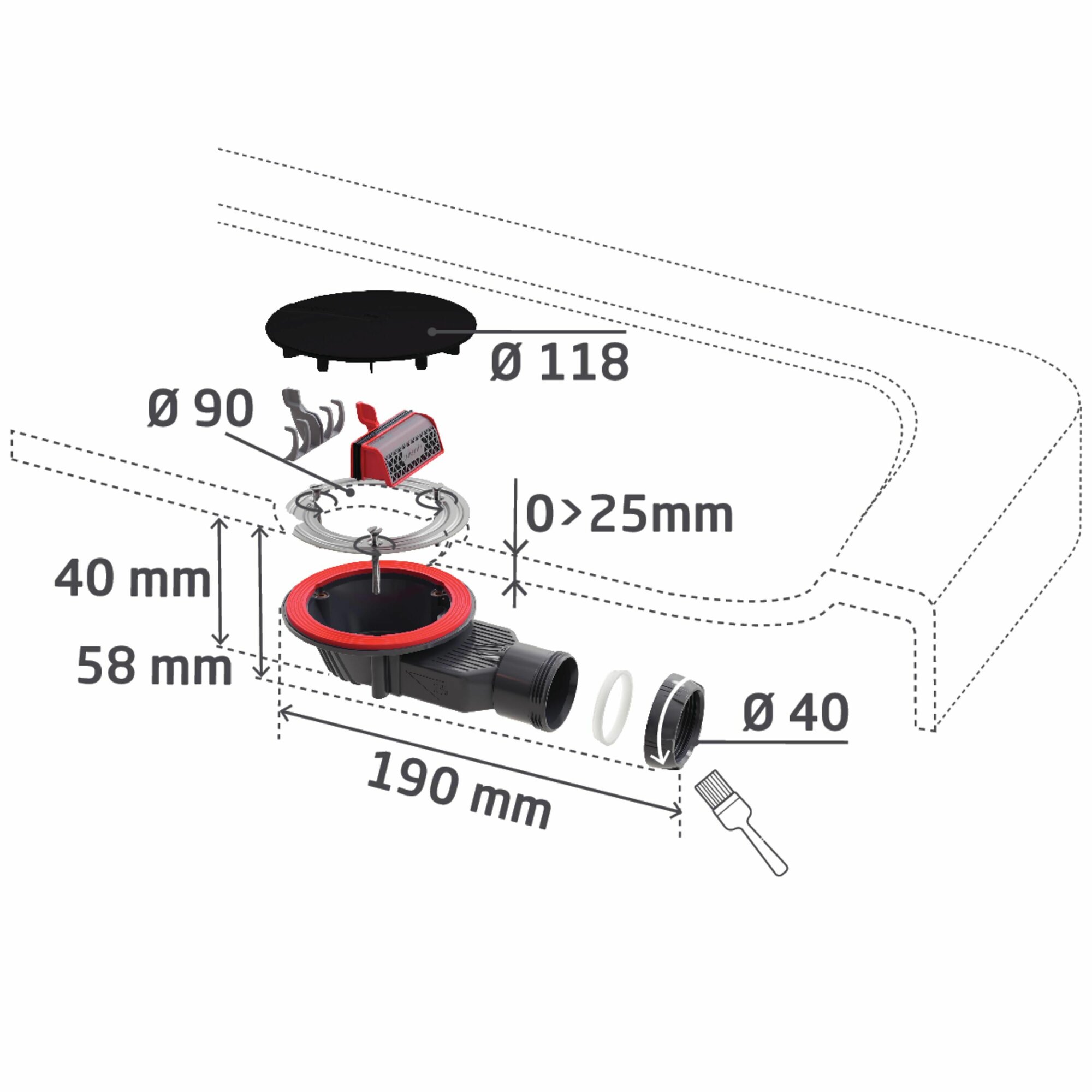 | Дополнительная информация | Сверхплоский сифон для душевого поддона 90 мм с усовершенствованной мембраной и фильтром для волом |
