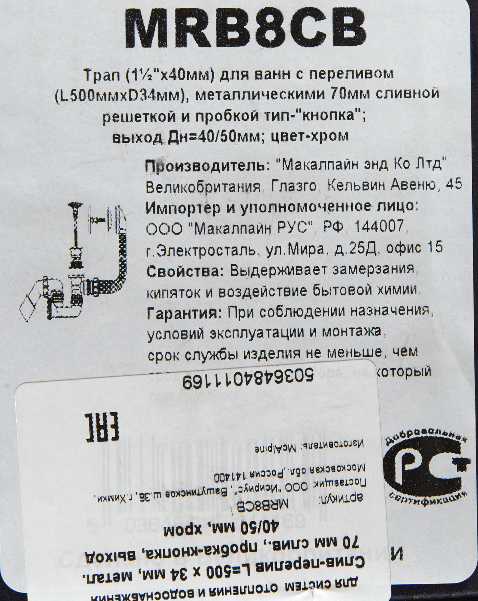 Слив-перелив Mcalpine MRB8CB-PB, L=500 х 34 мм, слив 70 мм, выход 40/50 мм интересное: