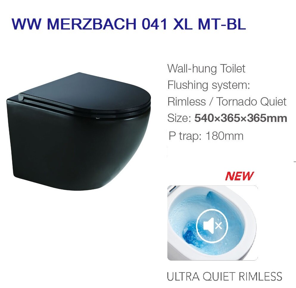 Унитаз подвесной WeltWasser WW MERZBACH 041 XL MT-BL безободковый, с сиденьем микролифт, черный матовый