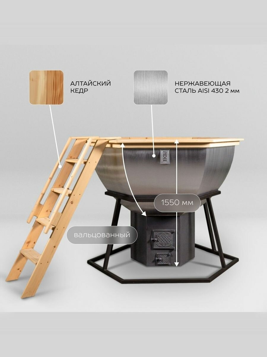 Банный чан Горыныч для 2х-4х человек стандартная лестница купель 1500 литров диаметр 170 см