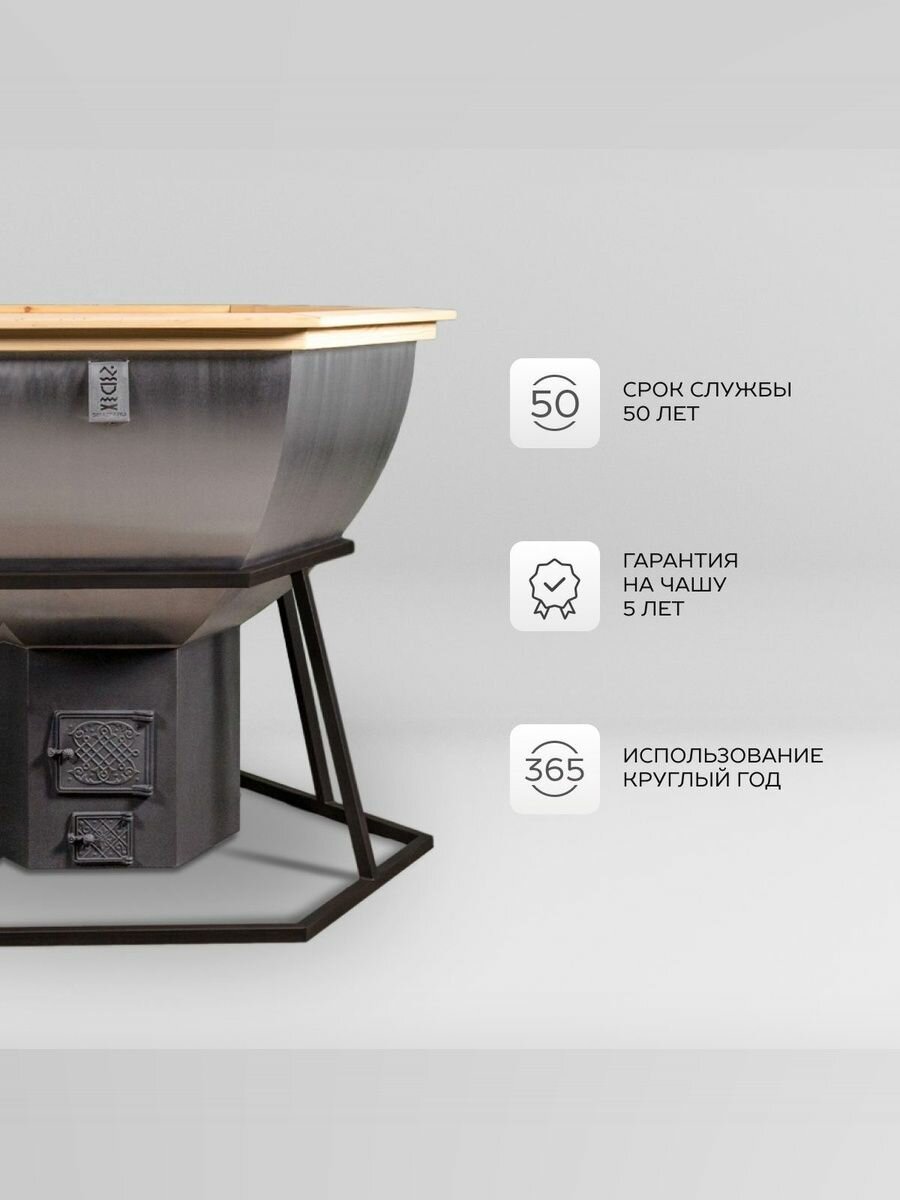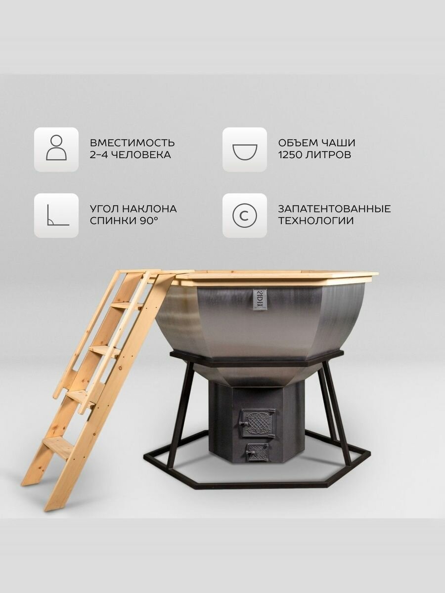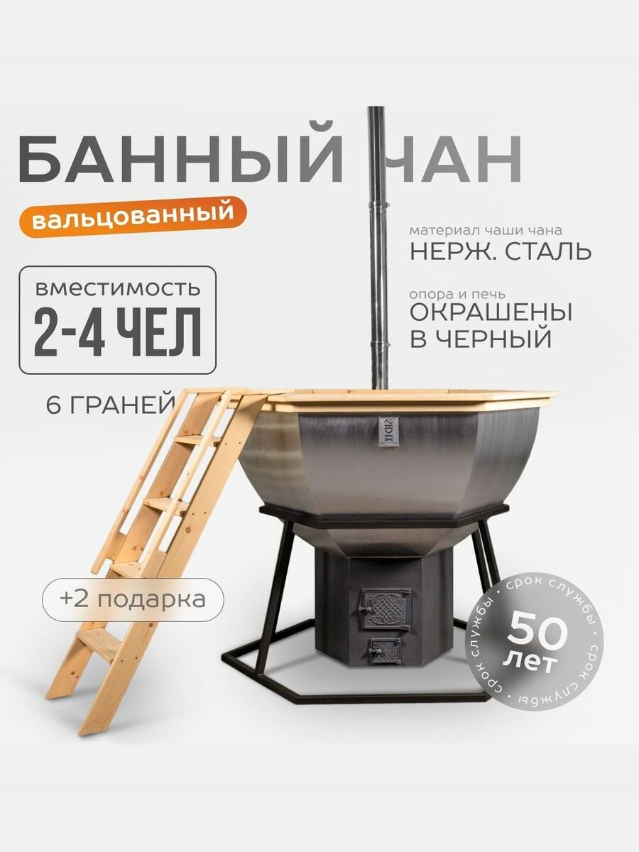 Сибирский банный чан на 4 человека с печью на дровах, на опоре, окрашен в черный интересное: