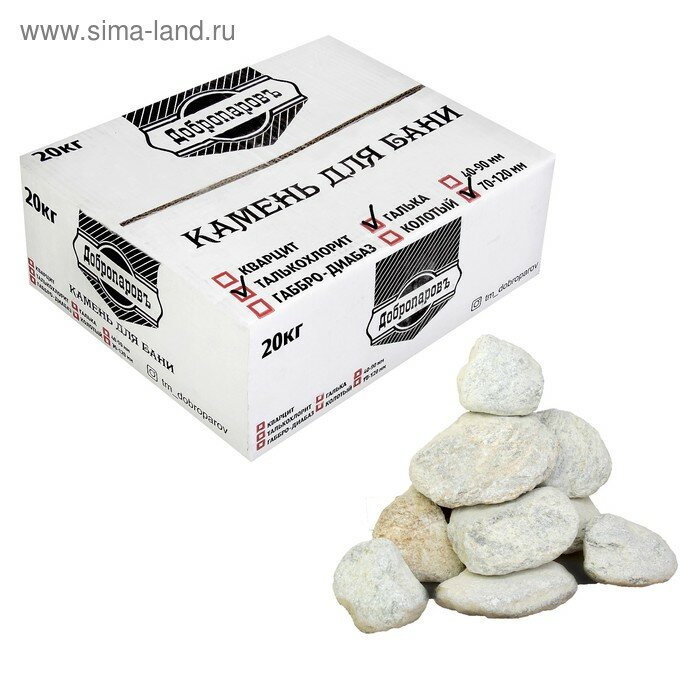 Камень для бани "Талькохлорит" галтованный, "Добропаровъ" коробка 20кг, фракция 70-120мм