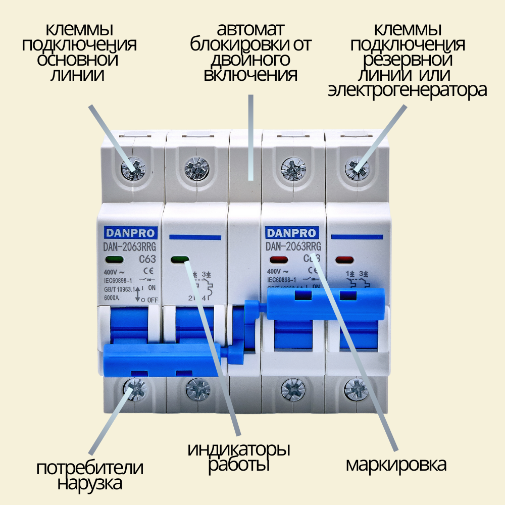 СохранитьРубильник реверсивный механический DANPRO, ручной ввод резерва генератора, однофазный 2P-2P на DIN рейку интересное: