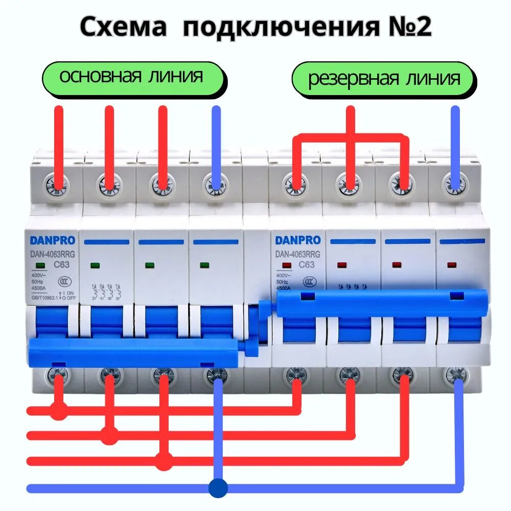 Рубильник реверсивный механический DANPRO, автоматический ввод резерва генератора, однофазный 2P-2P на DIN рейку