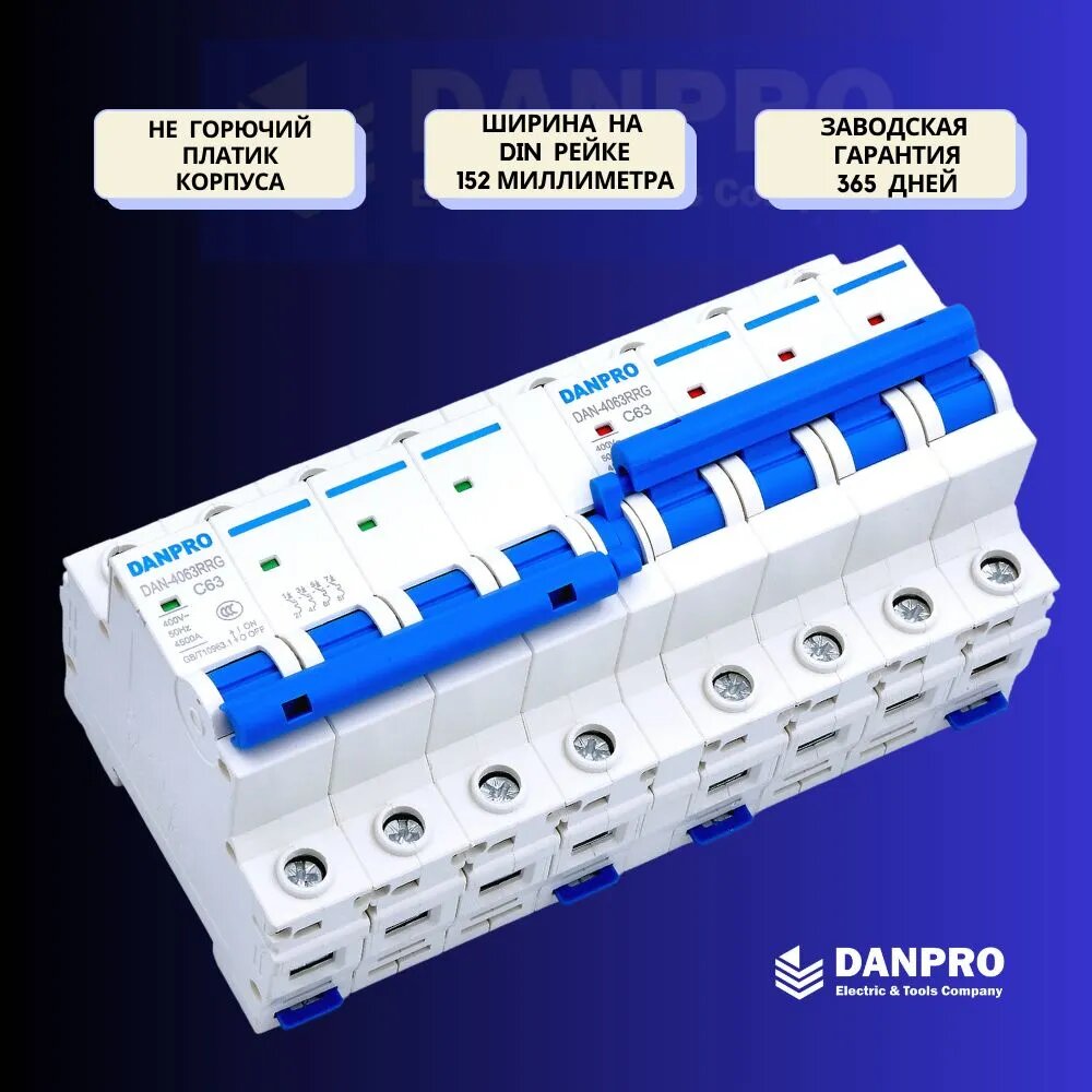СохранитьРубильник реверсивный механический DANPRO, ручной ввод резерва генератора, трехфазный 4P-4P на DIN рейку интересное:
