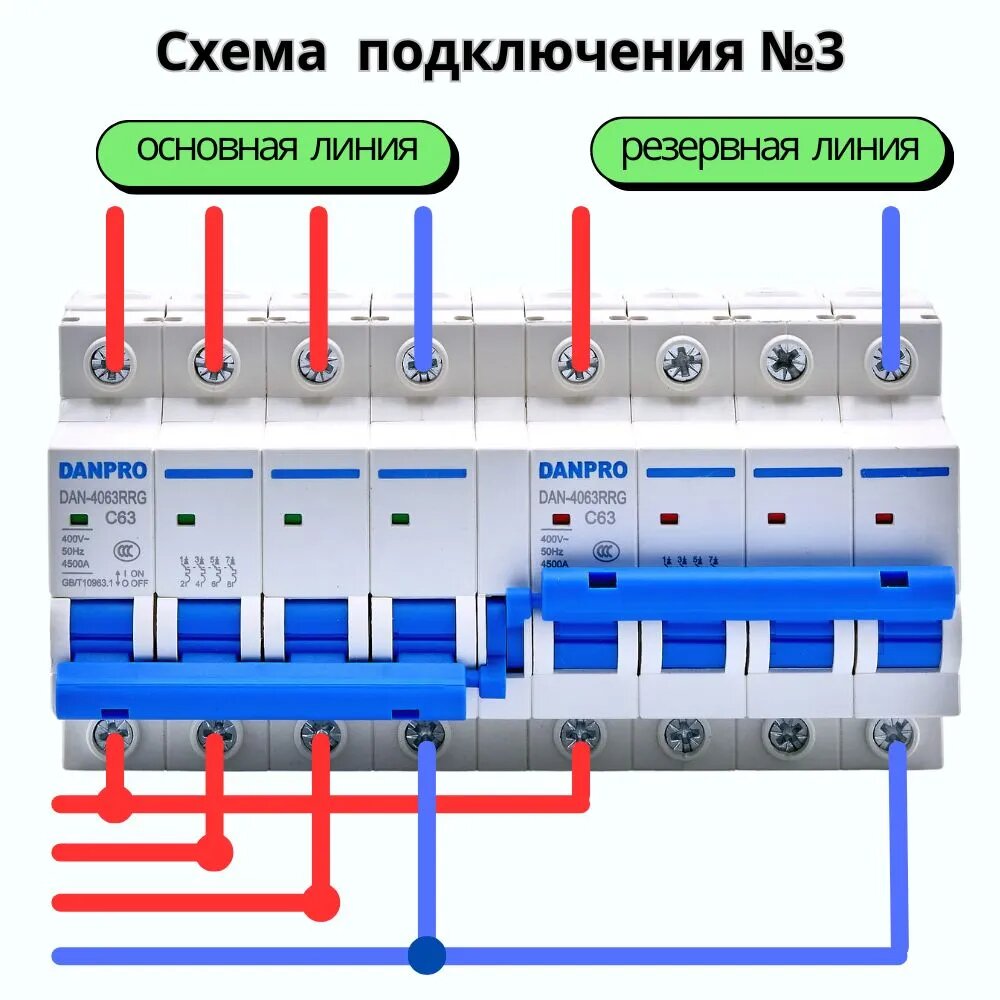 Рубильник реверсивный механический DANPRO, автоматический ввод резерва генератора, трехфазный 3P-3P на DIN рейку