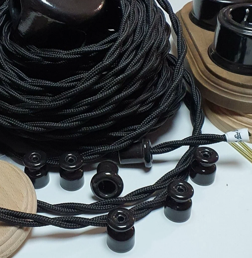Витой ретро провод BIRONI БирониI 2х0,75 матовый, 3 м/уп., цвет: черный B1-422-73-3