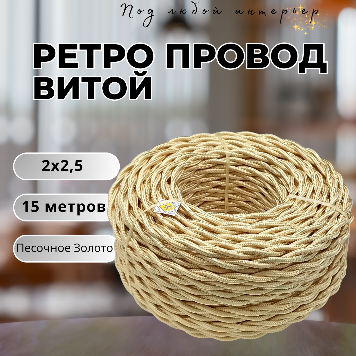 Витой ретро провод BIRONI Бирони 2х2,5 матовый, 15 м/уп., B1-425-719-15 цвет: песочное золото