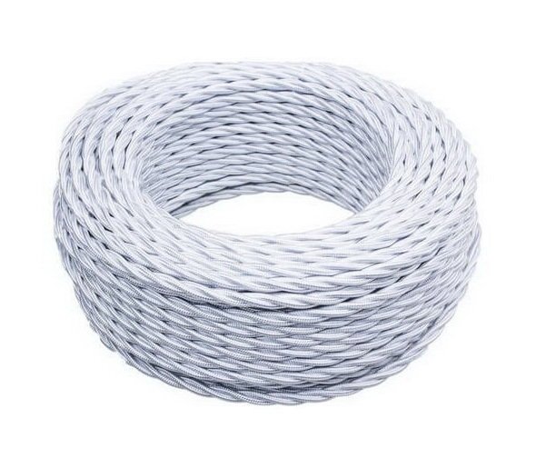 Ретро витой провод BIRONI 2х2,5, белый (глянец), 50 метров