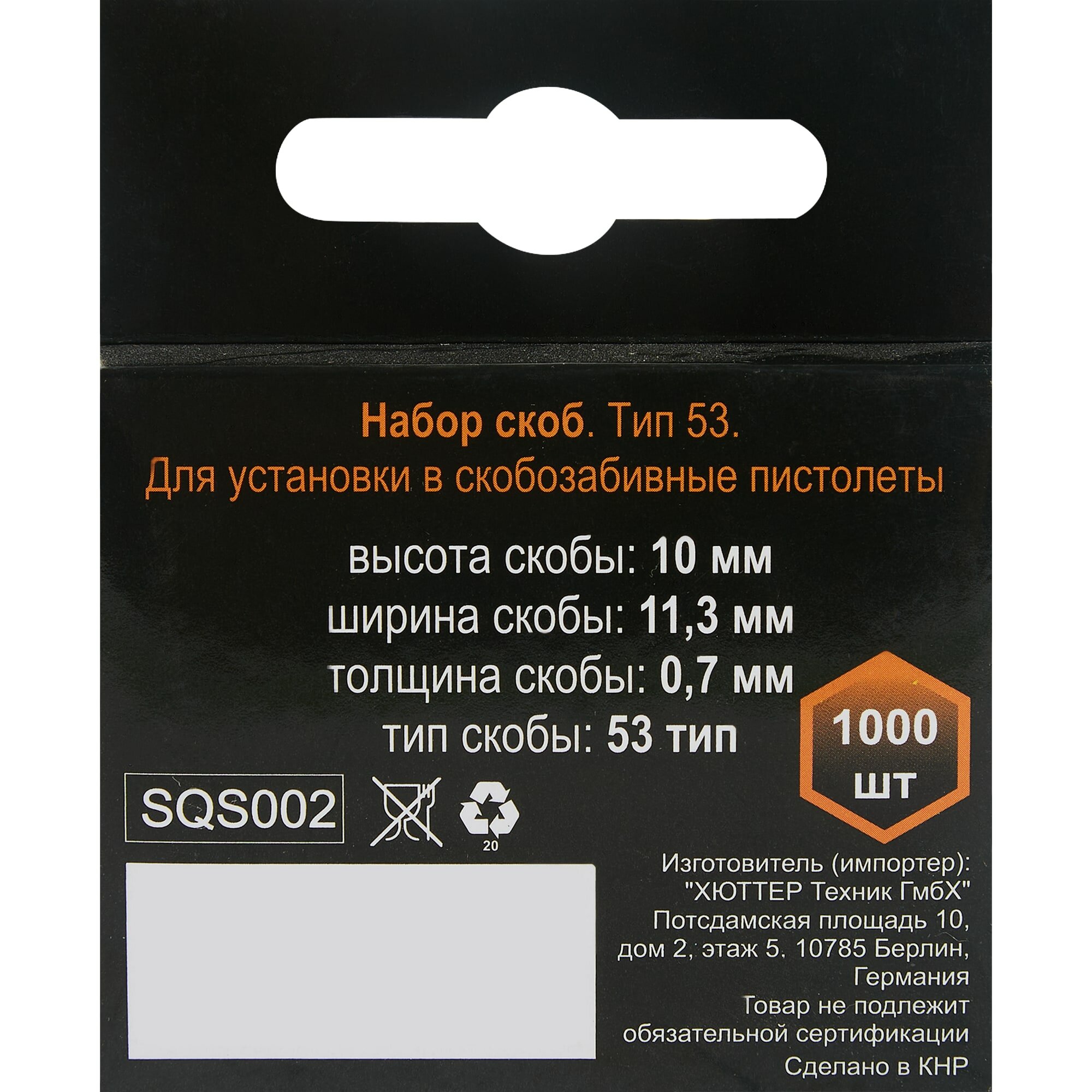 Скобы для мебельного степлера тип 53 10мм 1000 шт