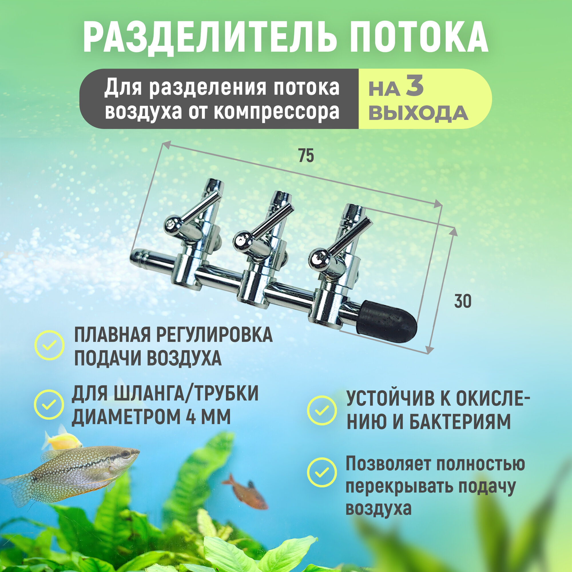 СохранитьРазделитель потока для аквариума. Металлический для компрессора с тремя краниками, плавная регулировка. Диаметр 4 мм. интересное: