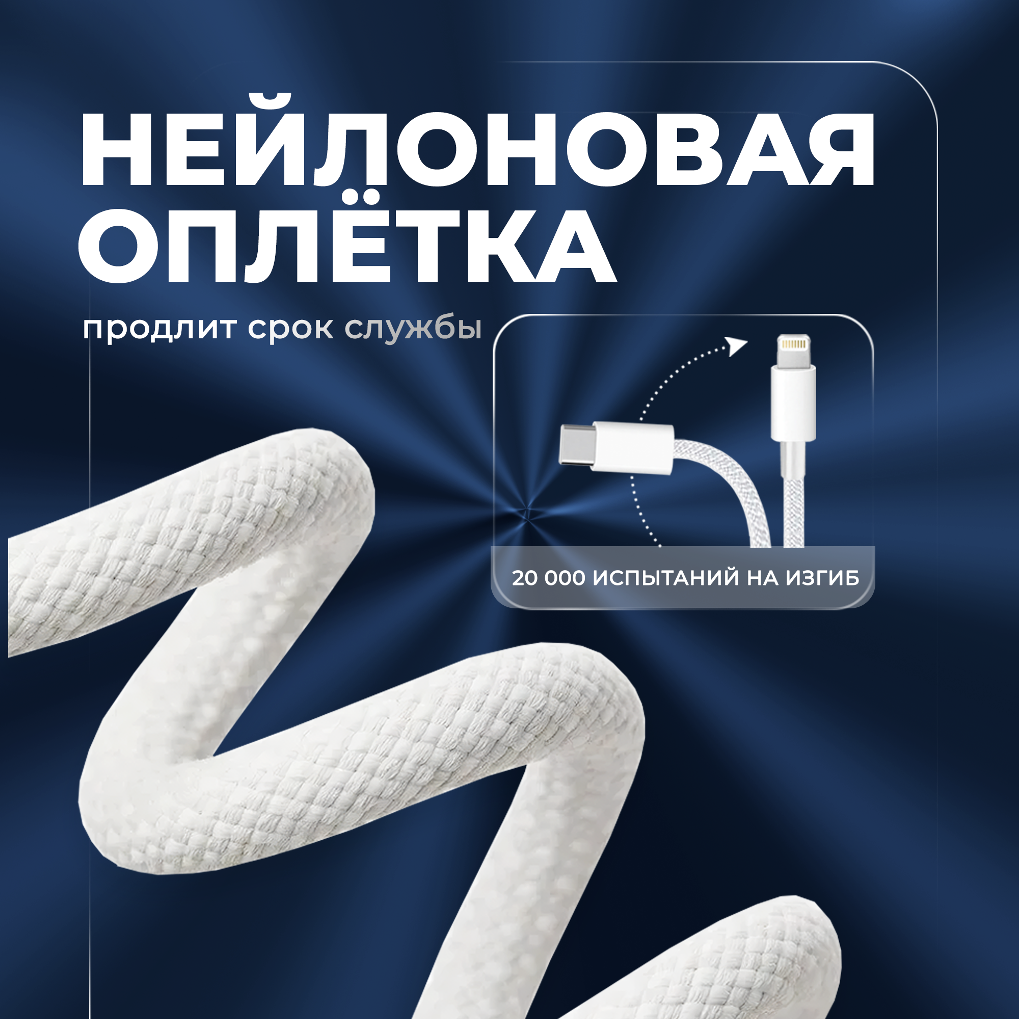 Провод для айфона, WALКЕR, C860, 2 метра, 30W, Type-C-Lightning, поддержка PD, нейлоновый кабель, для смартфона, Iphone/Apple, белый
