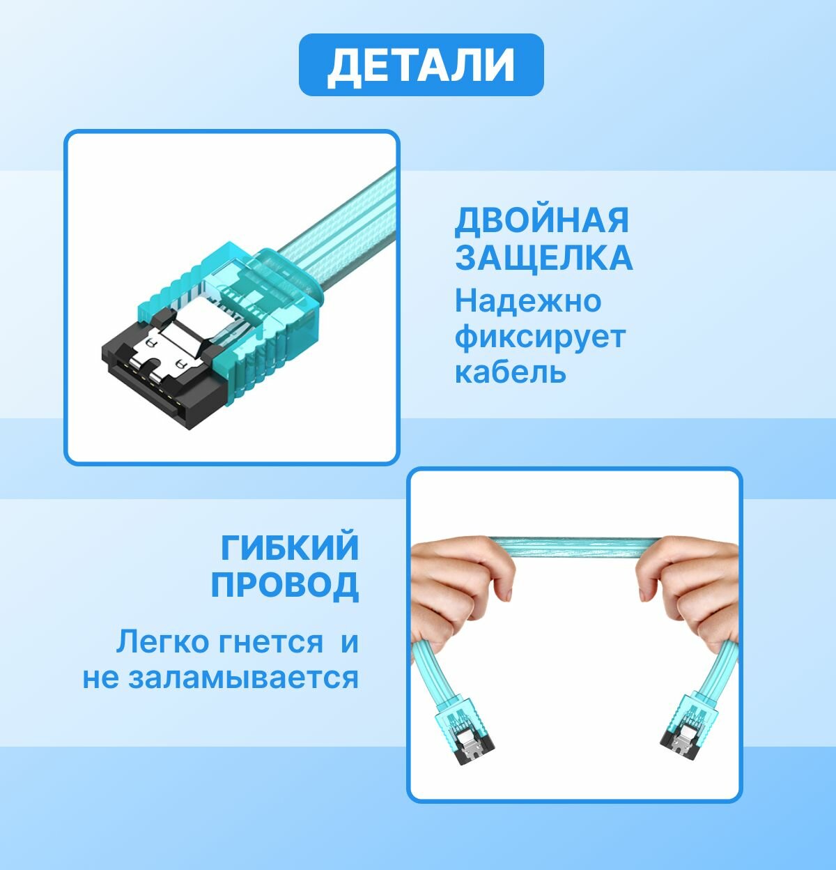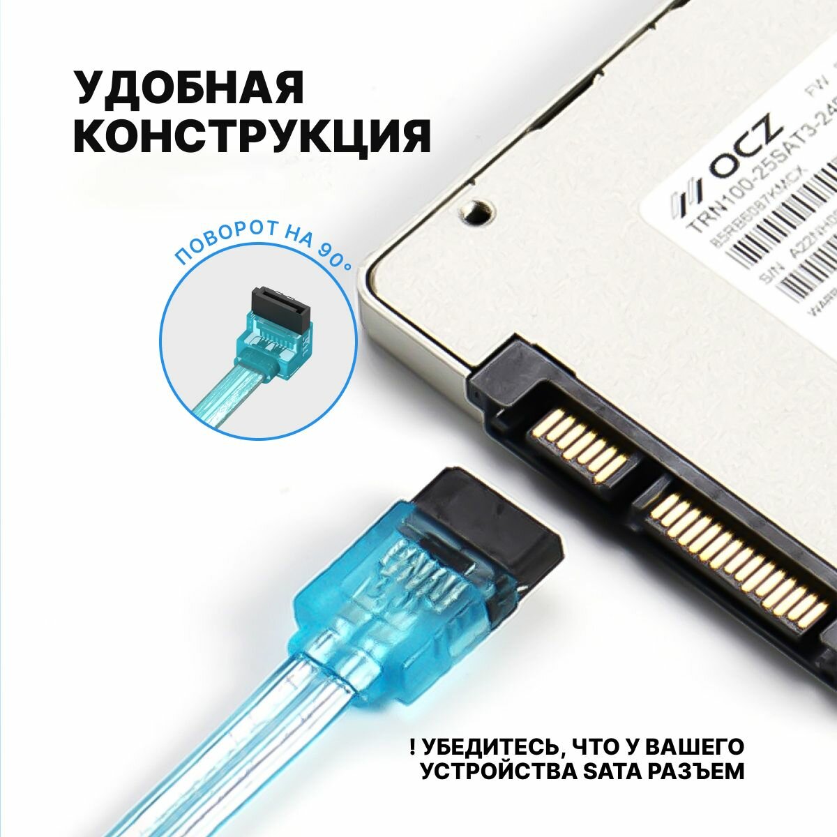 Кабель SATA 3.0 голубой 50см угловой интерфейсный кабель с защелками, соединительный угловой 90 для SSD или HDD арт. KDDSD интересное: