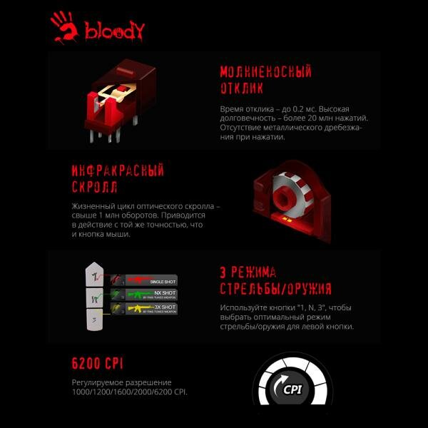 Ниже Вы можете прочитать отзывы на Мышь проводная A4TECH Bloody A7 Blazing чёрный USB, ознакомится с подробными характеристиками, посмотреть интересные обзоры и фотографии на Мышь проводная A4TECH Bloody A7 Blazing чёрный USB.
