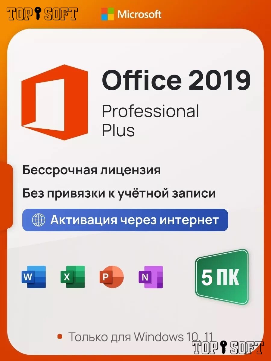 Microsoft Office 2019 Pro Plus ключ активации (На 5 ПК, Бессрочная лицензия, Онлайн активация) интересное: