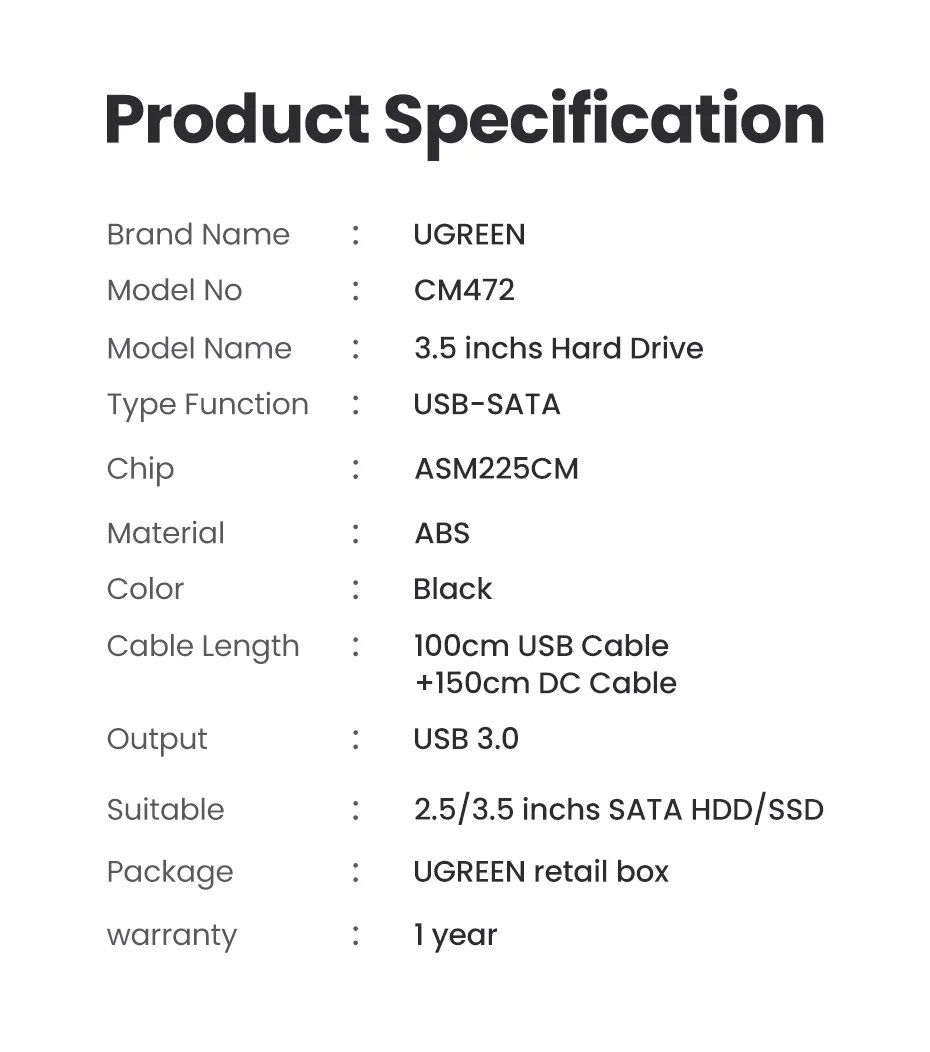 Купить UGREEN корпус для HDD 3,5/2,5 дюйма, For 3.5 2.5 EU Plug