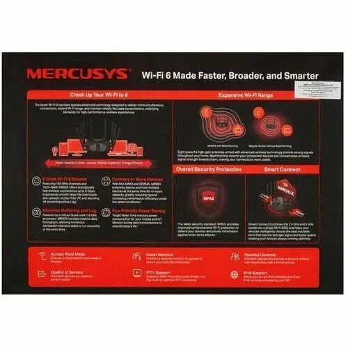 Ниже Вы можете прочитать отзывы на Беспроводной маршрутизатор Mercusys MR90X, ознакомится с подробными характеристиками, посмотреть интересные обзоры и фотографии на Беспроводной маршрутизатор Mercusys MR90X.