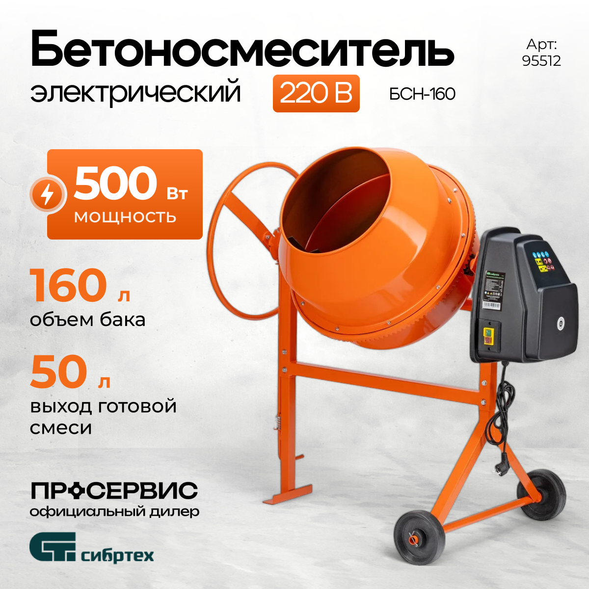 Бетоносмеситель СИБРТЕХ БСН-160, чугунный венец, 500Вт, 160л, 50л готового раствора интересное: