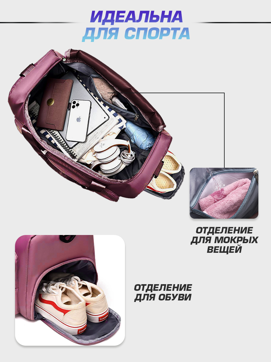 Сумка дорожная спортивная женская, мужская, ручная кладь в самолёт, для фитнеса и бассейна.