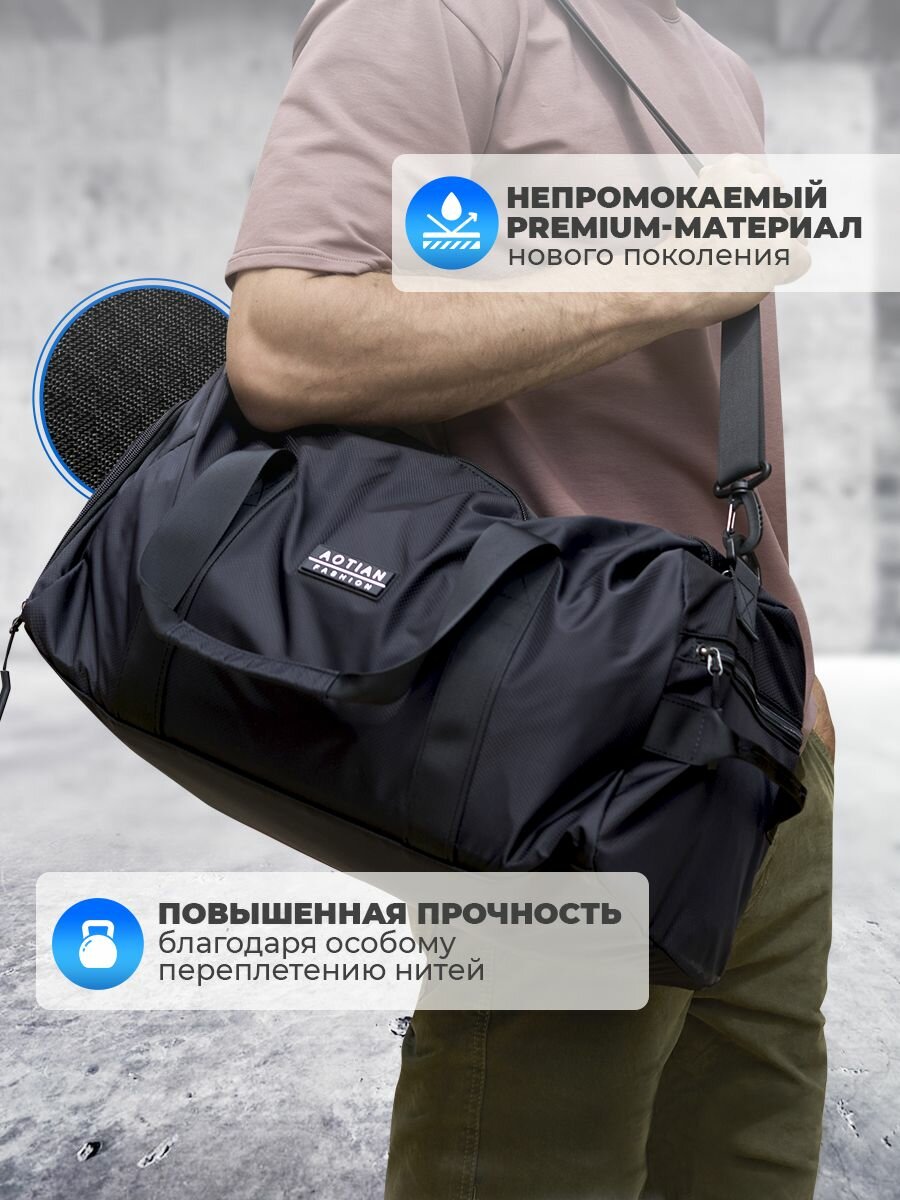 Сумка спортивная AOTIAN, 22 л, 21х23х46 см, ручная кладь, черная интересное: