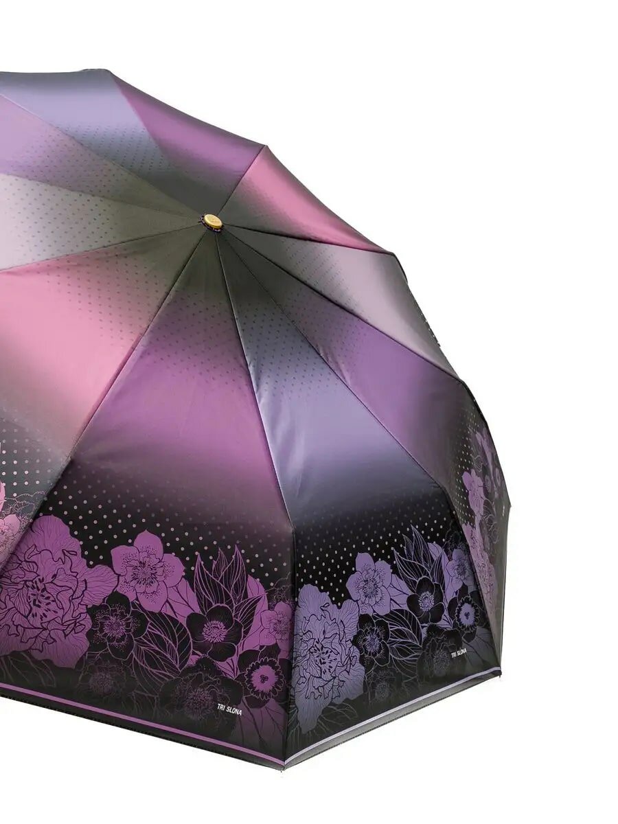 Зонт "Три Слона" женский №310-5, купол D=103 см, 10 спиц, суперавтомат бежево-черный