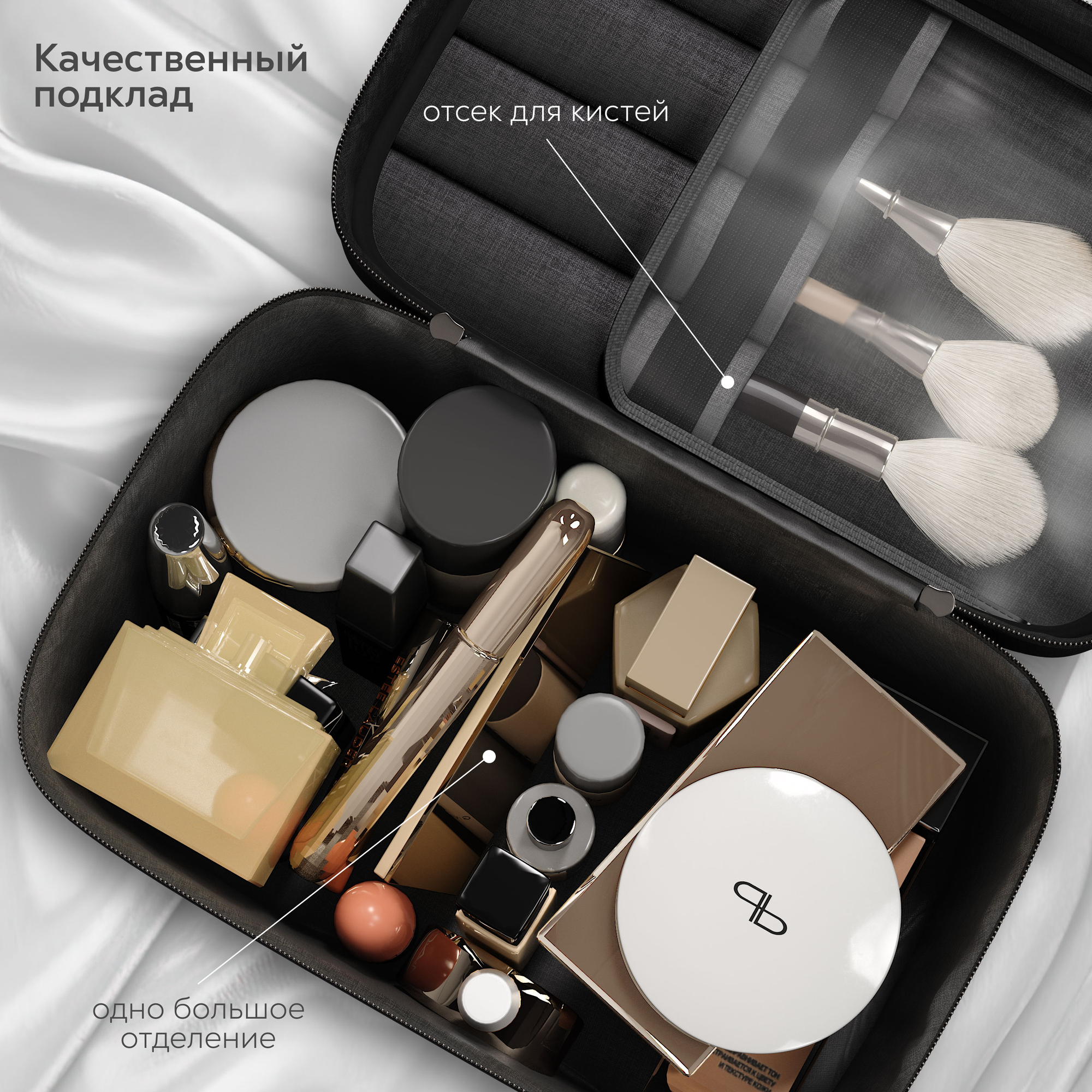Косметичка женская дорожная на молнии Papuk Beauty Органайзер для косметики черная 1 шт