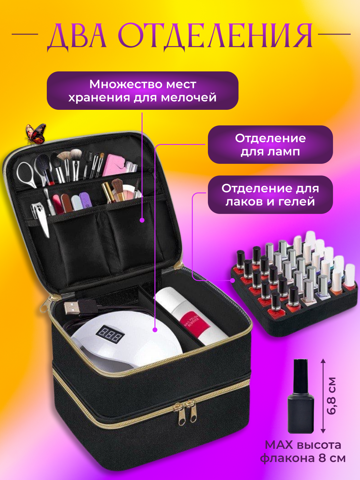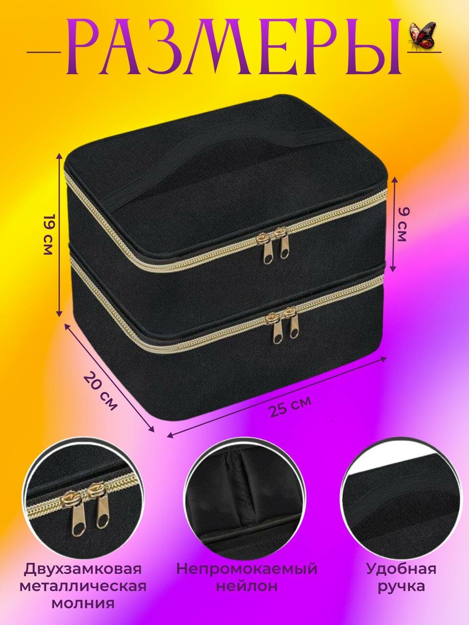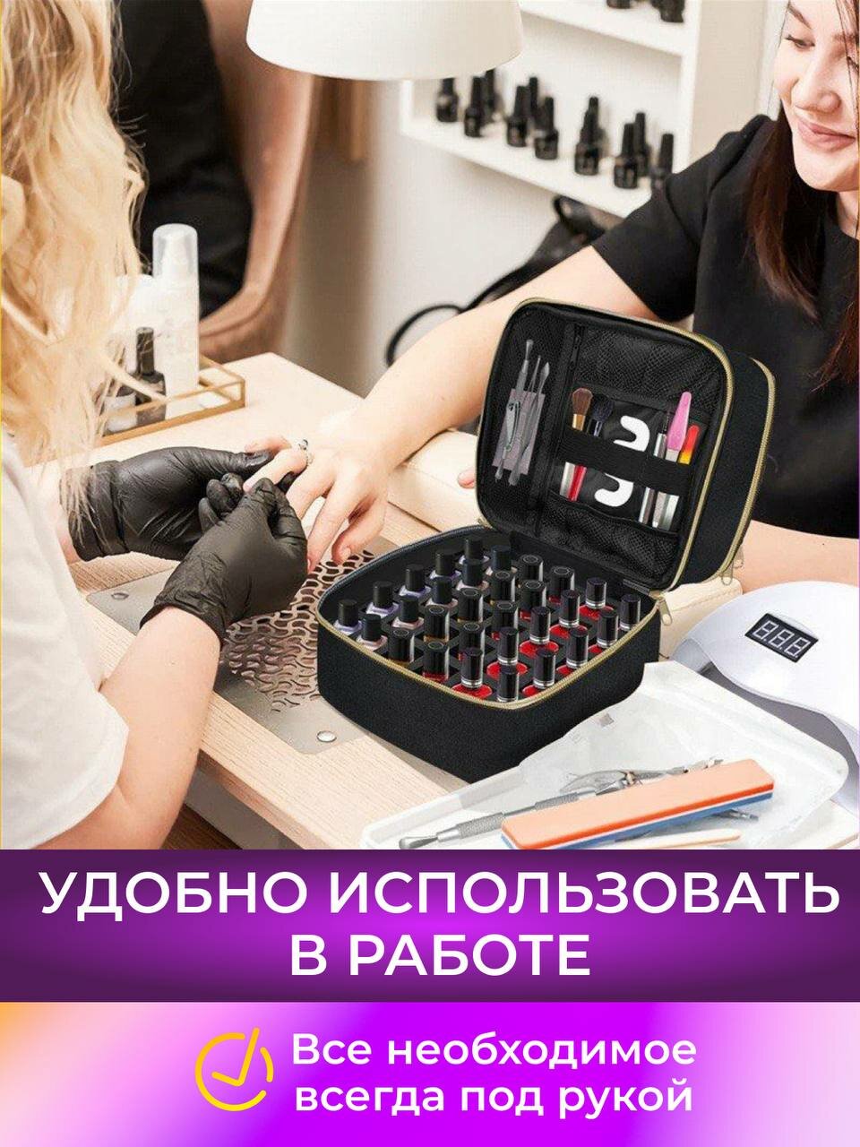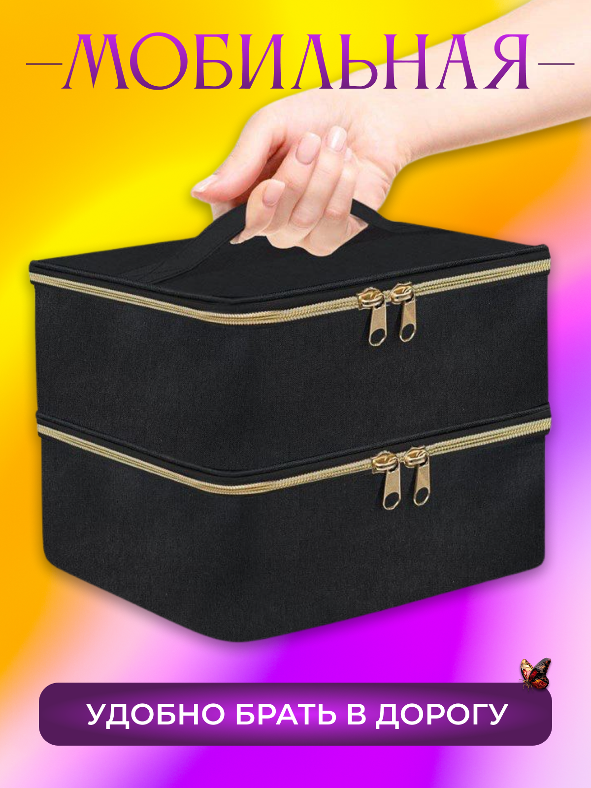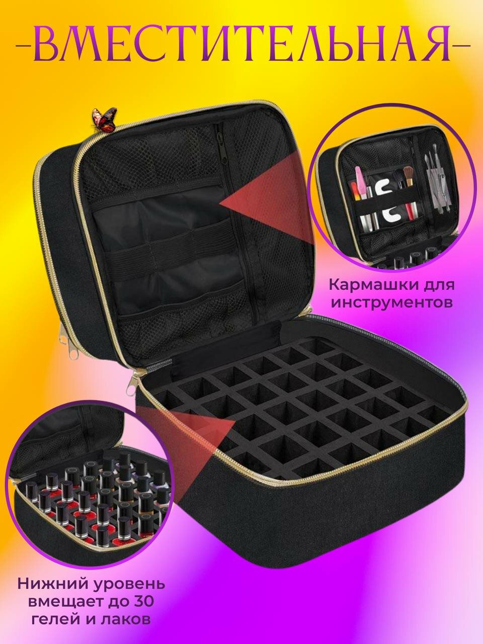 Сумка органайзер для мастера маникюра, бьюти-кейс черный