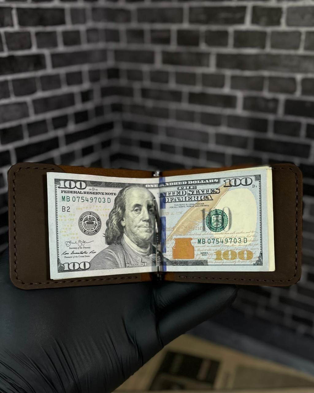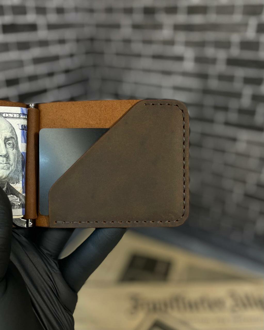 Зажим для купюр Grey Goose из натуральной кожи, ручной работы (коричневый)