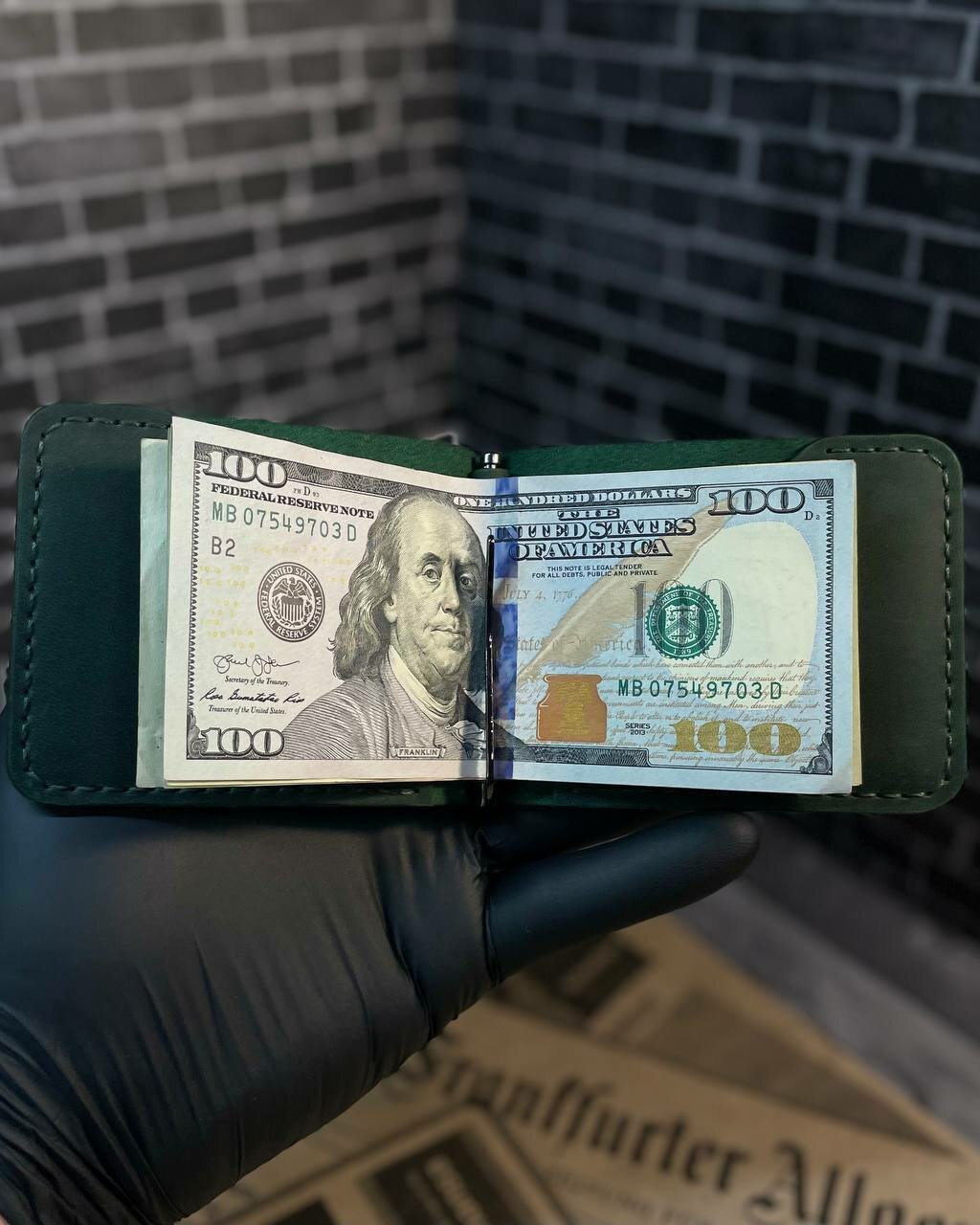 Зажим для купюр Grey Goose из натуральной кожи, ручной работы (черный)