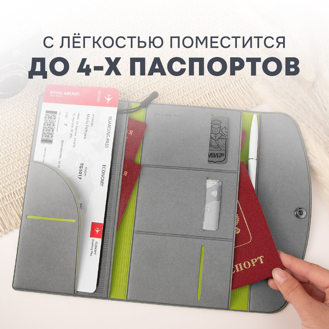 Папка для путешествий Flexpocket, органайзер на кнопке для документов в путешествие, серый