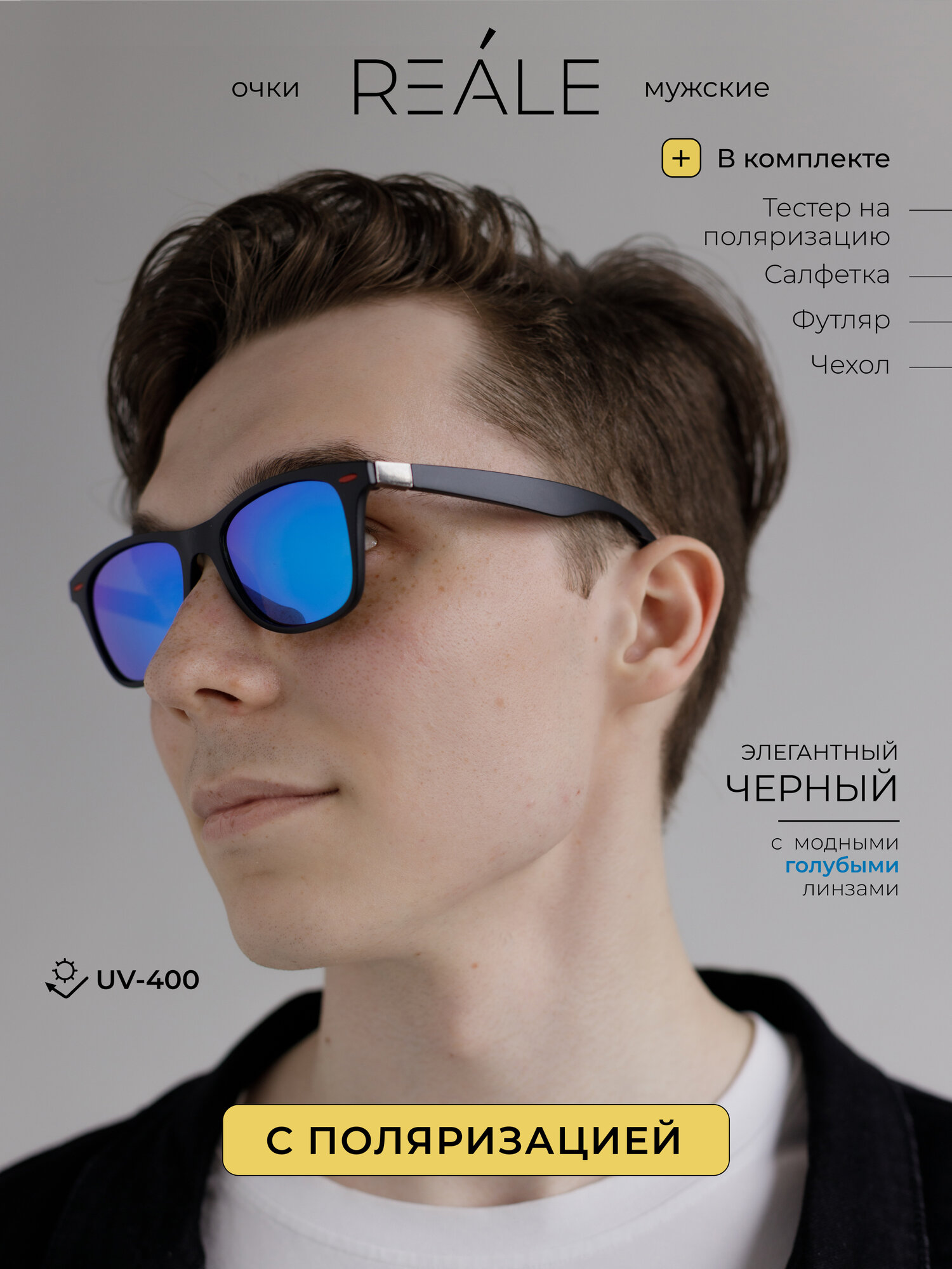 REALE/Очки солнцезащитные Wayfarer/Защита от ультрафиолета UV400/ Коллекция 2024