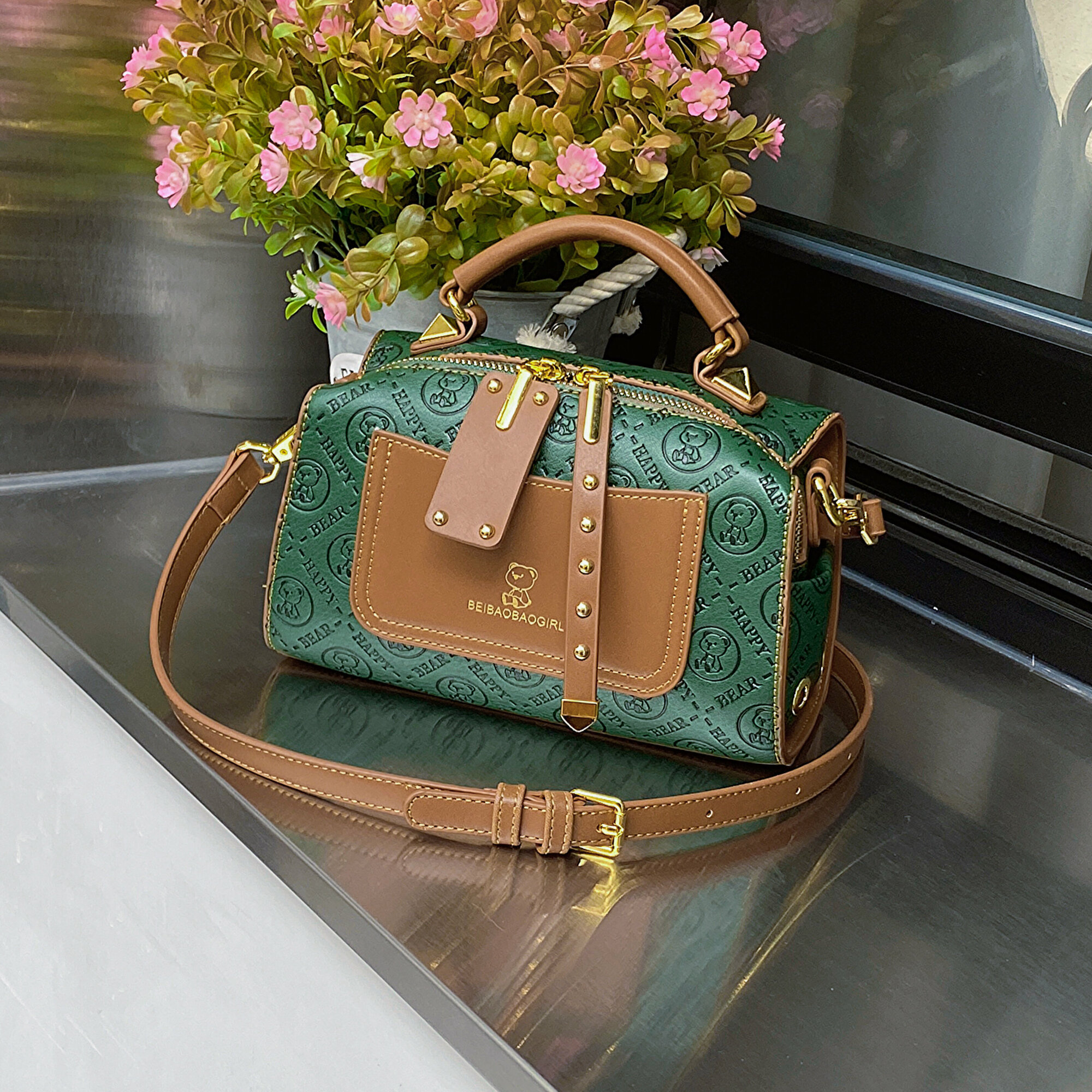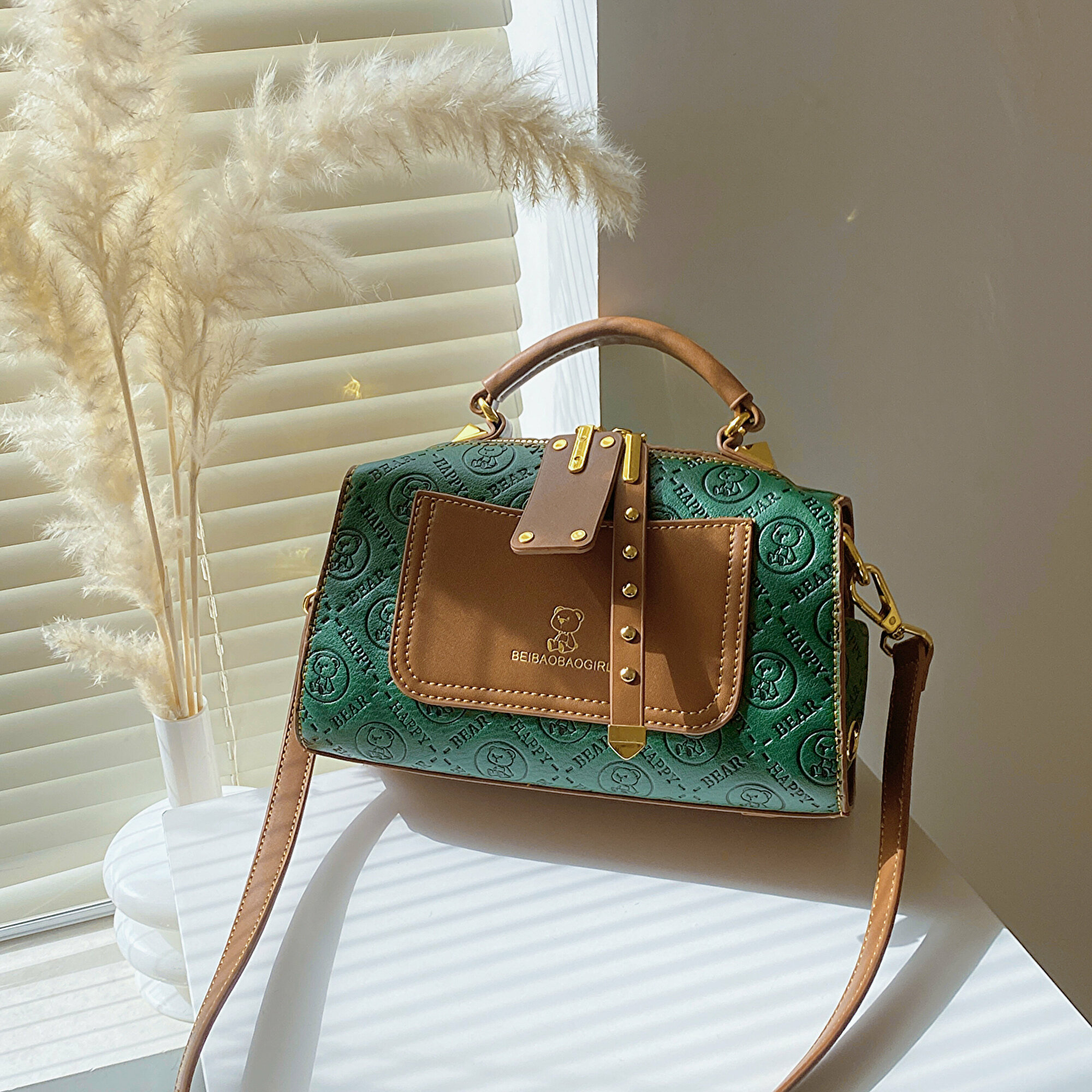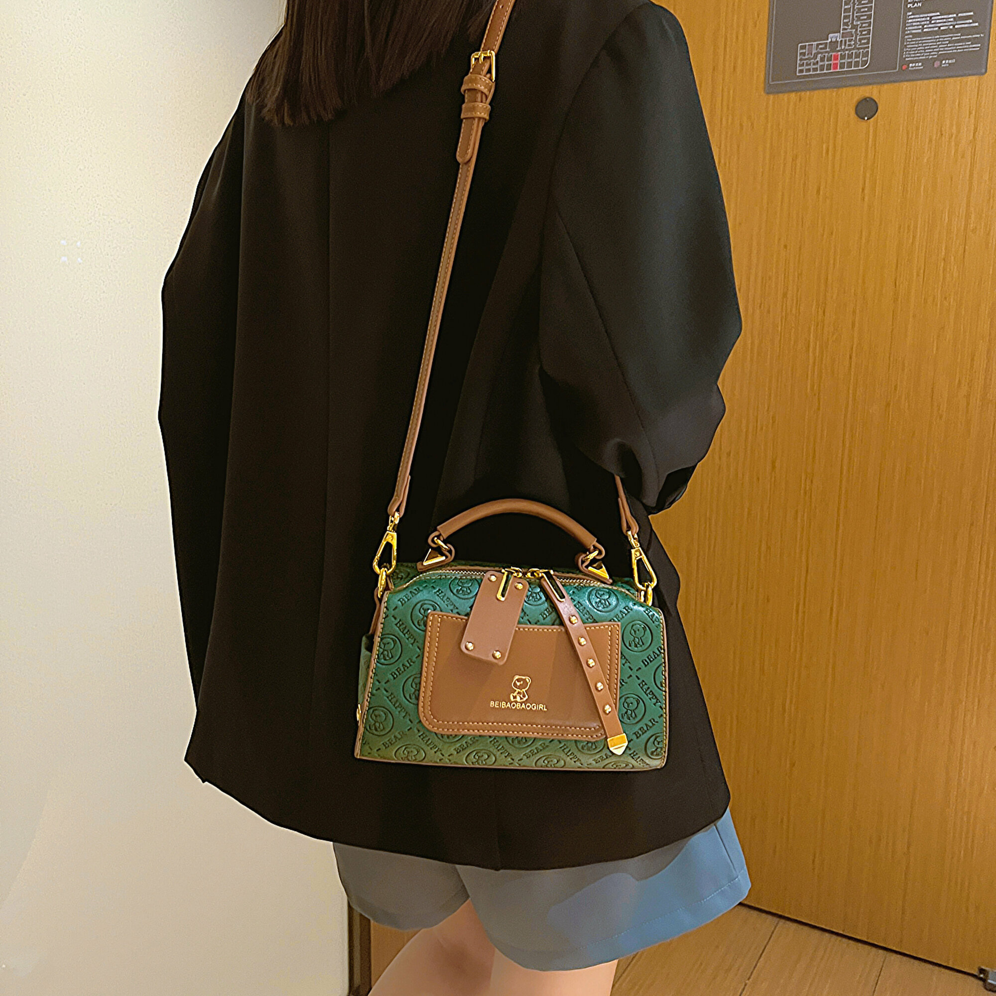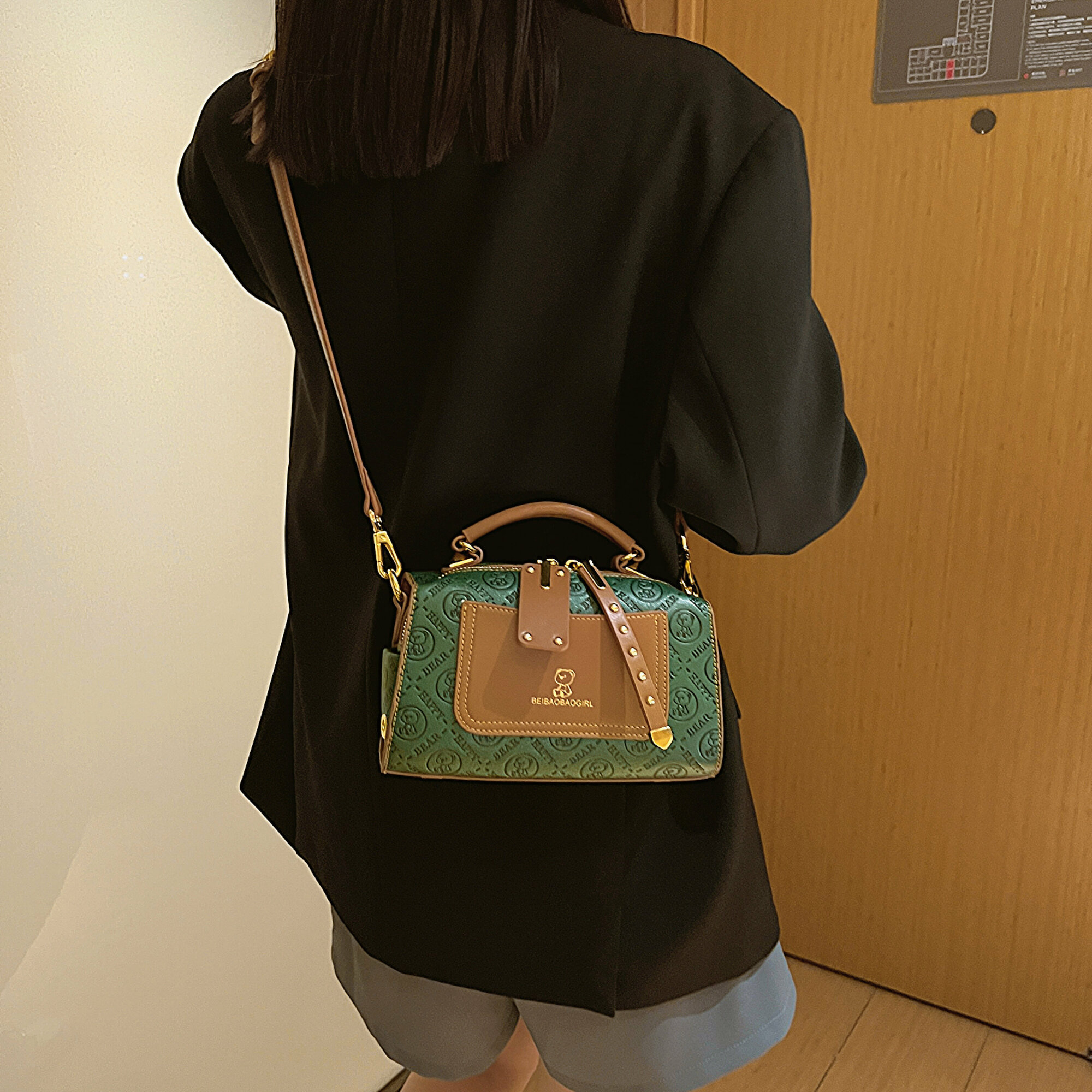 Сумка барсетка BeiBaoBao, фактура рельефная, зелёный интересное: